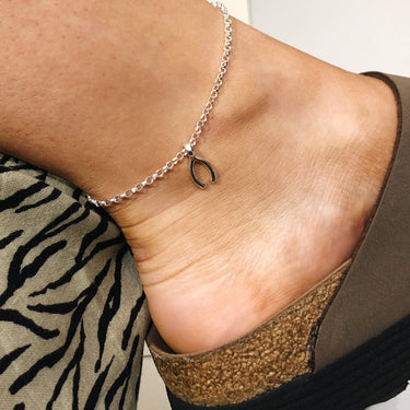 Beautiful Sterling Silver Wishbone chain anklet with three adjustable sizes.