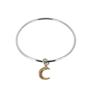 Gold Crescent Moon on Silver Bangle