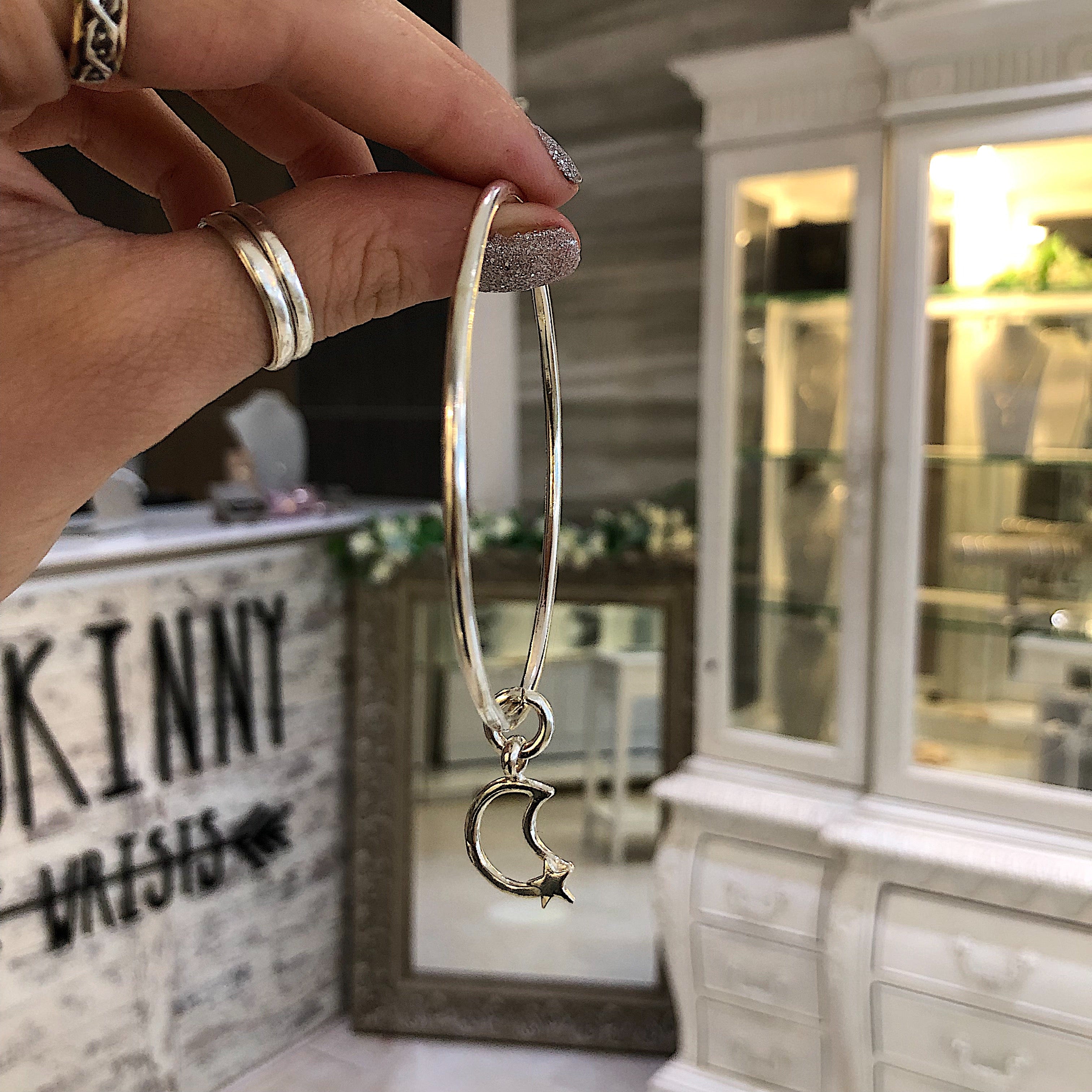 Moon and Back Charm Bangle