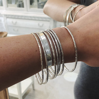 Our classic stacking bangles which can be smooth finish or textured finish. They are made in 925 sterling silver.