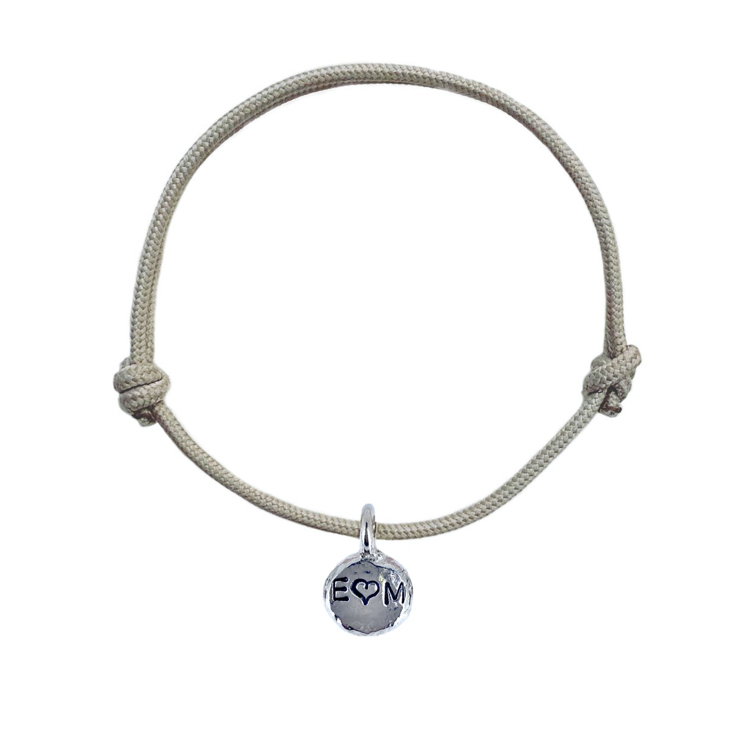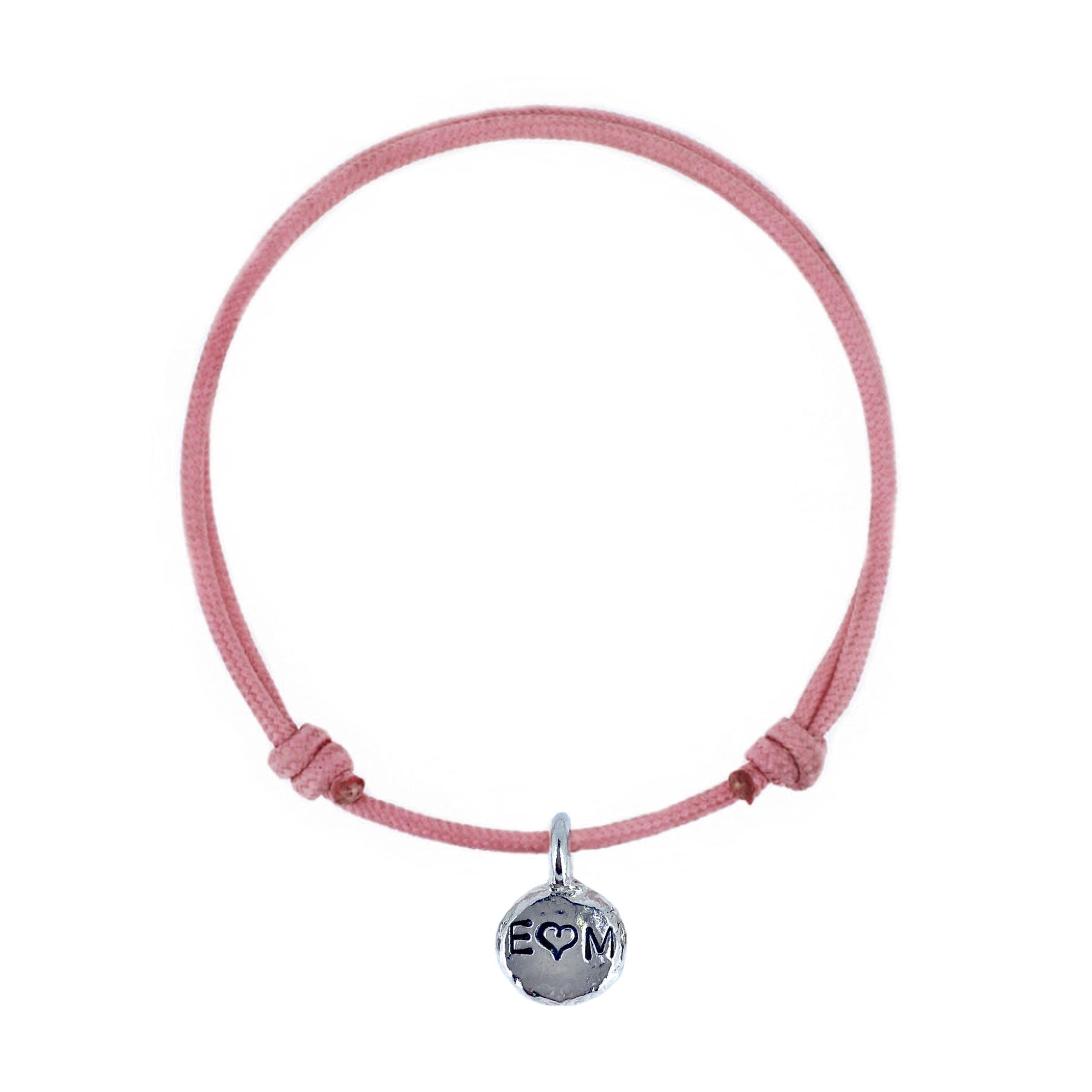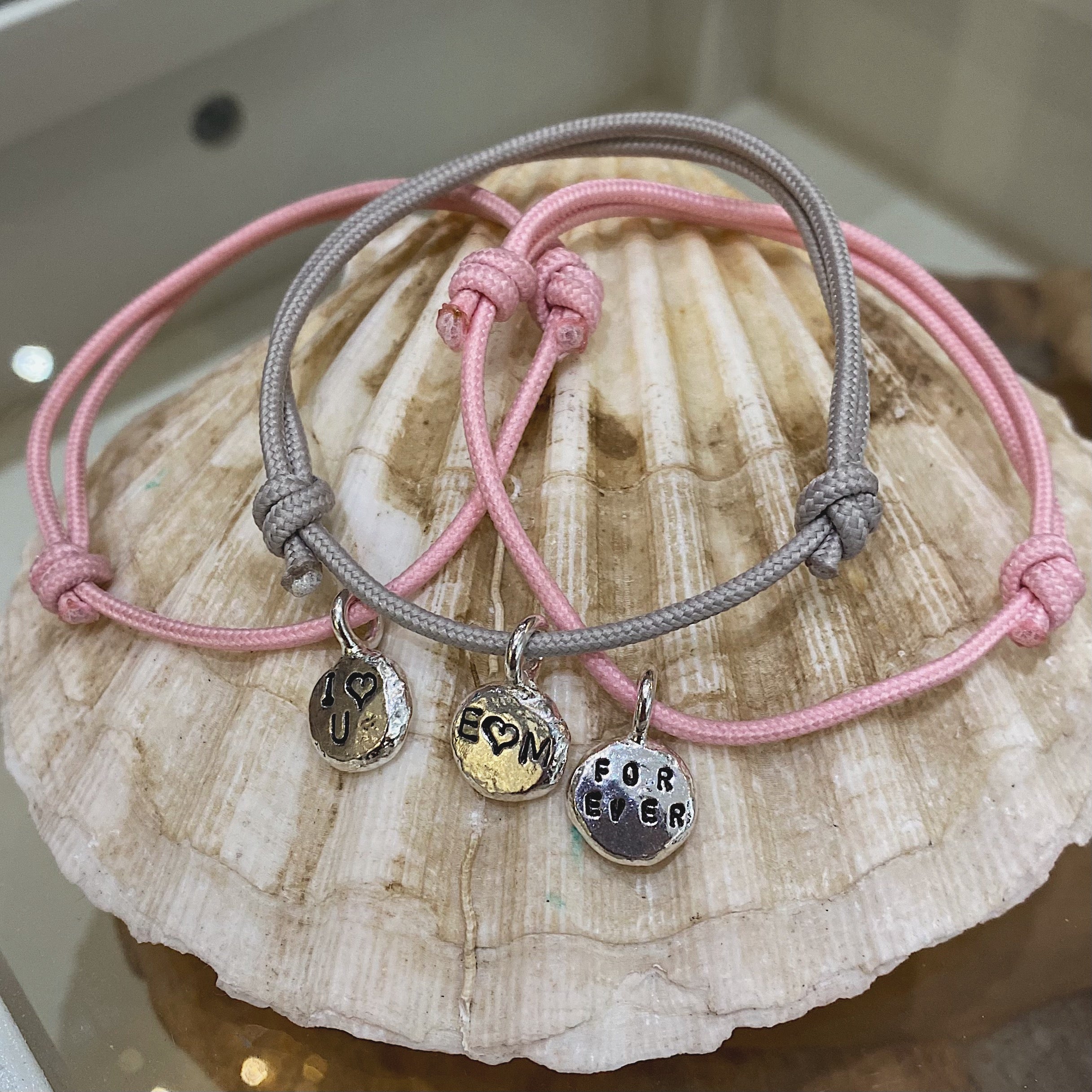 All lovingly made by hand using recycled solid 925 Sterling Silver. A beautiful piece to be worn alone or layered with other staple pieces. Something hand stamped is always special. Spread the love with our Valentines rope collection. Choose from grey or pink rope and three different hand stamping options. All of our rope bracelets are adjustable. Please add rope colour in the note section. Light Grey will automatically be used if there is no note for an alternative colour.