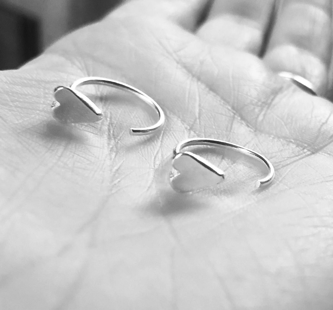 Handmade in sterling silver our heart hooks hook through your ear to create unique reverse hoop style
