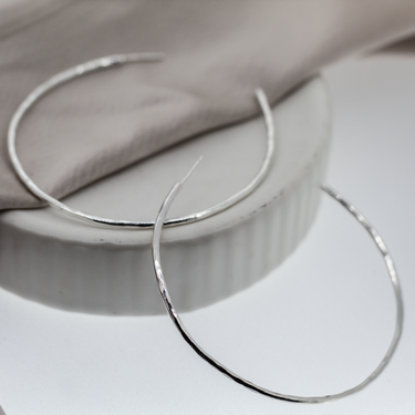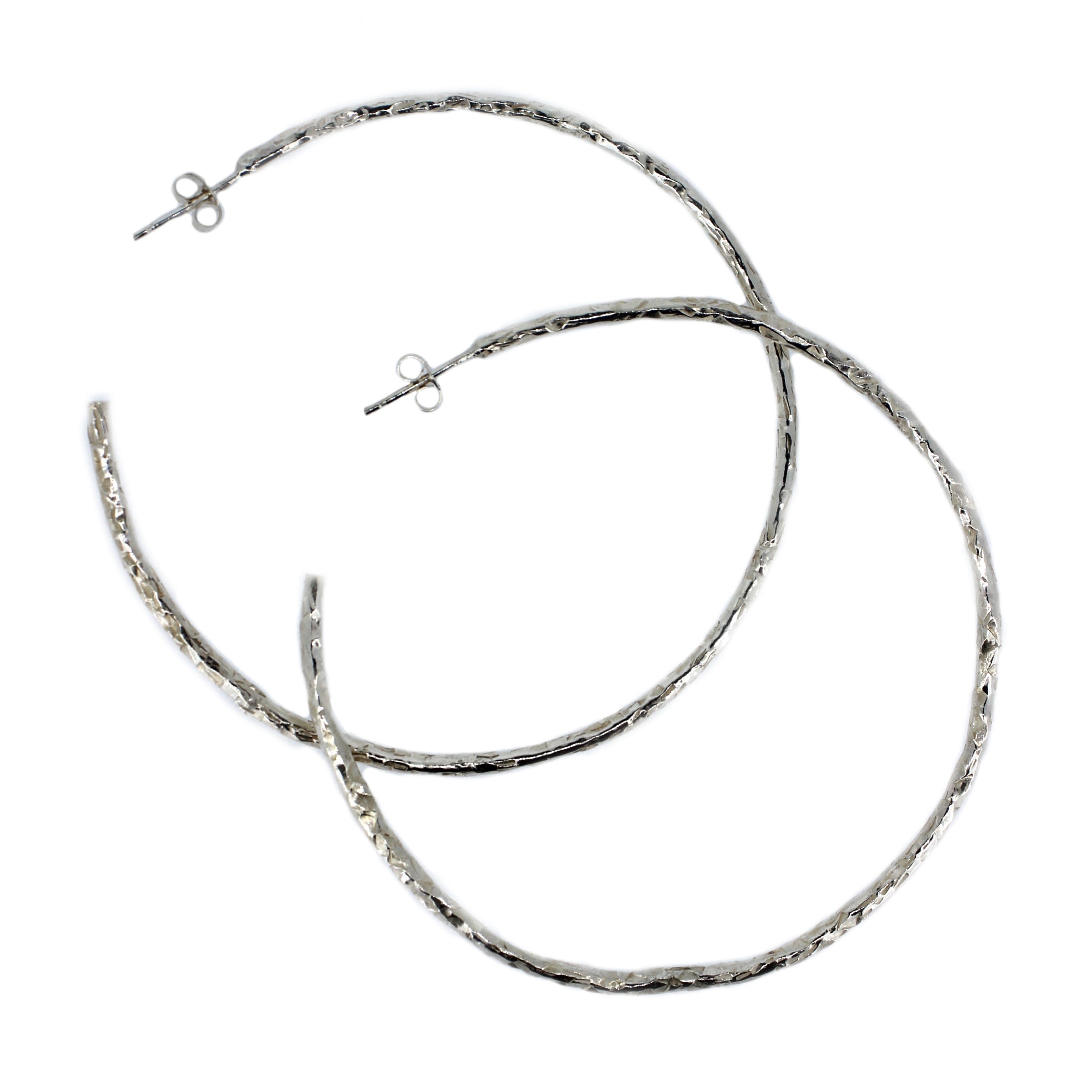 Maxi silver hoops with a textured finish.