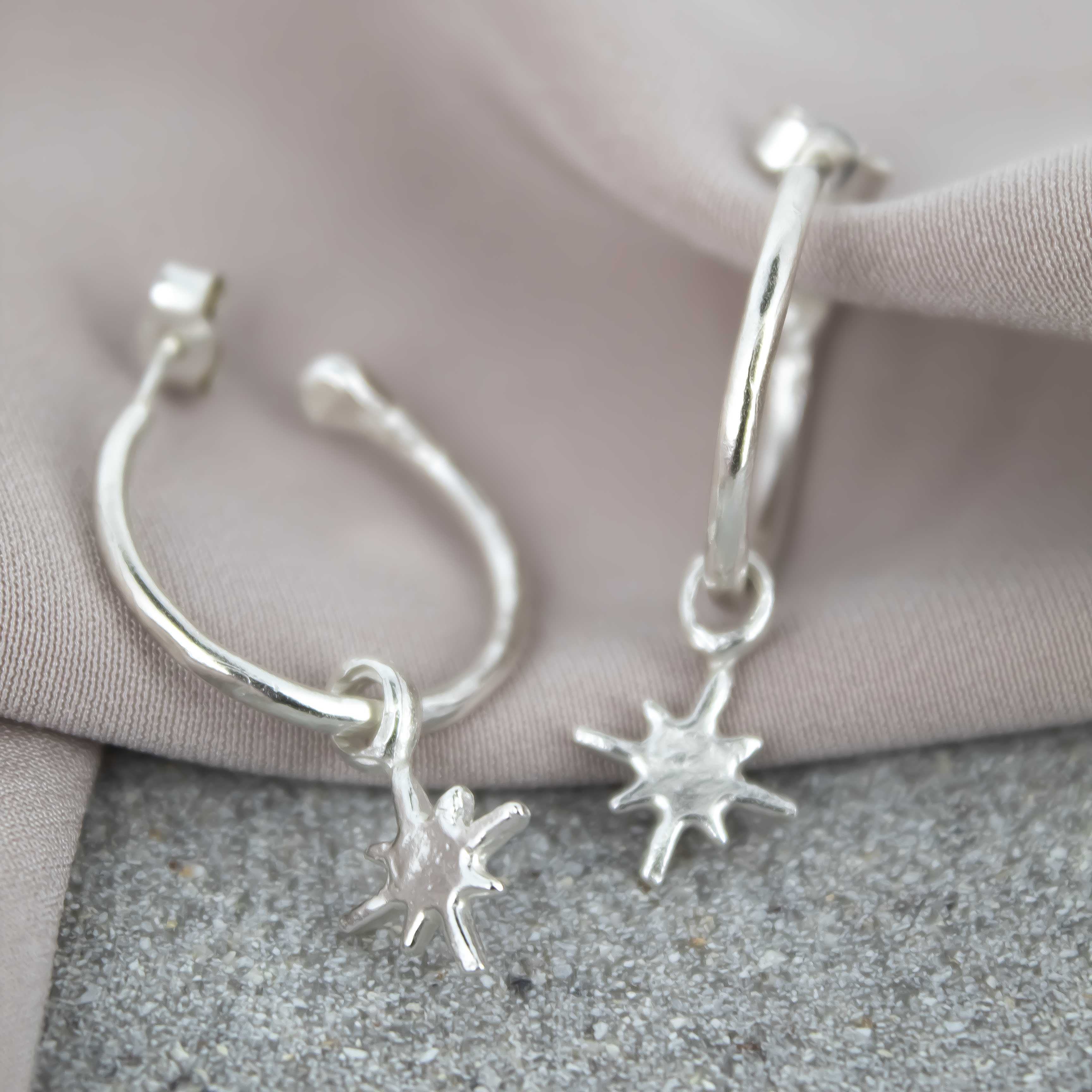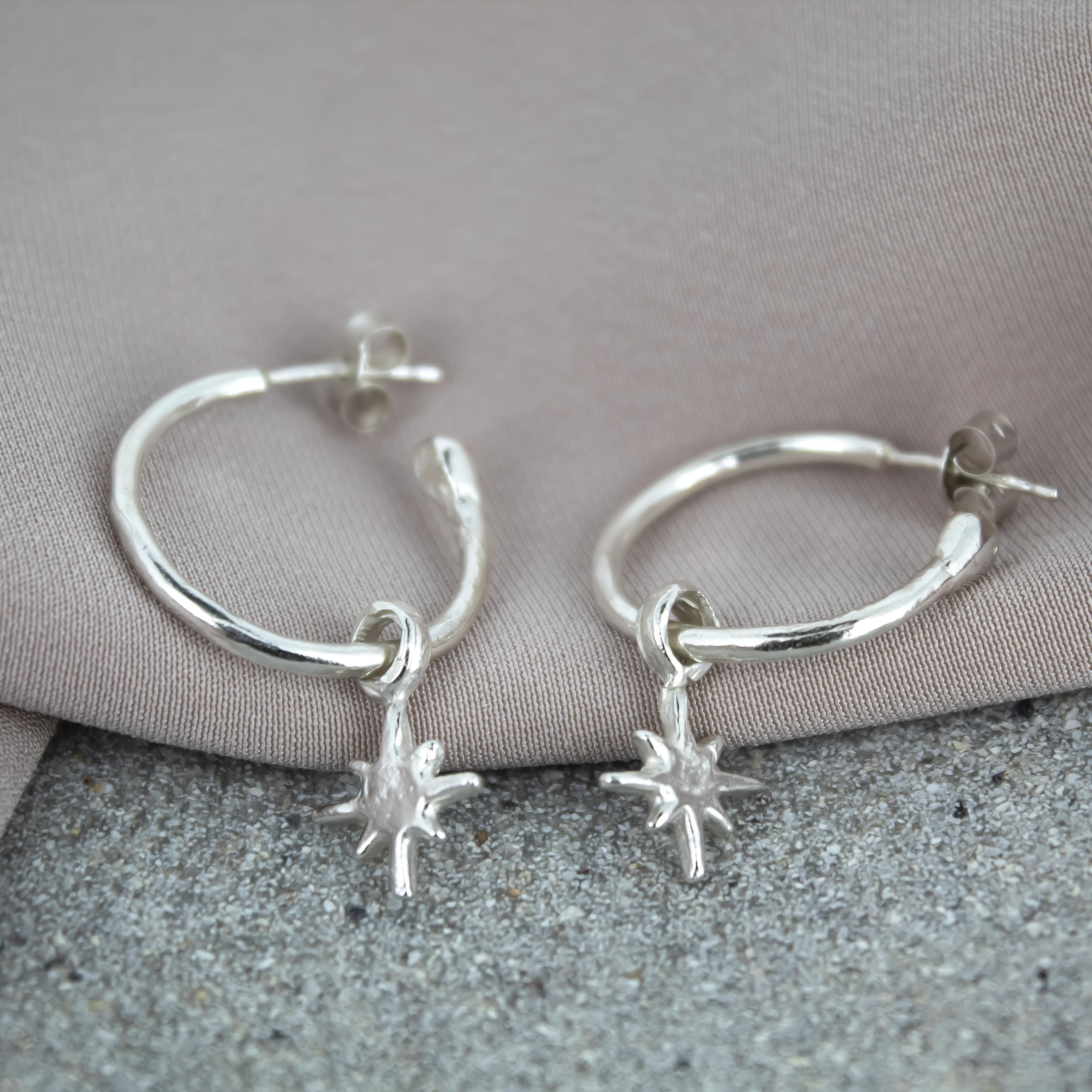 North Star Charm Hoops hand made in sterling silver