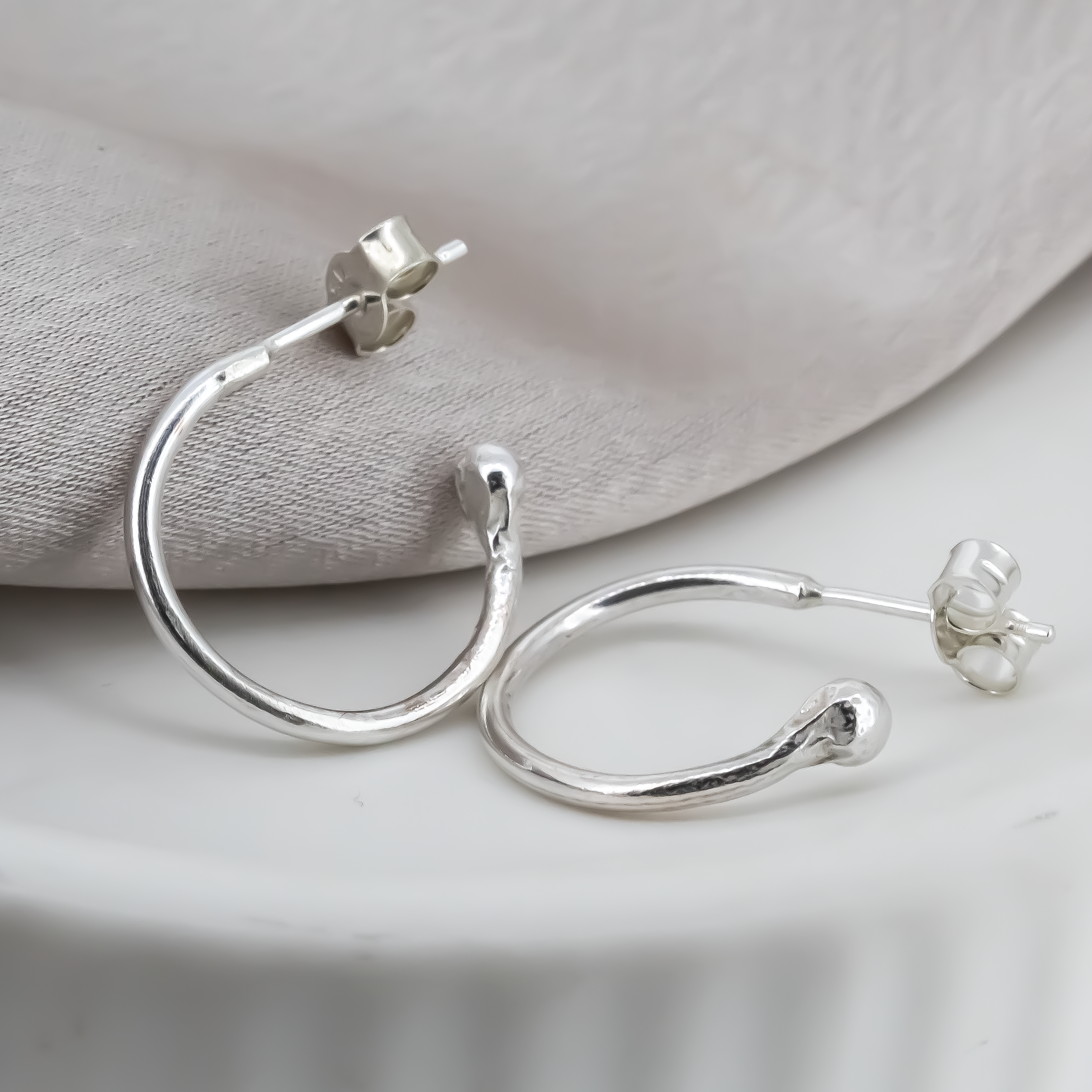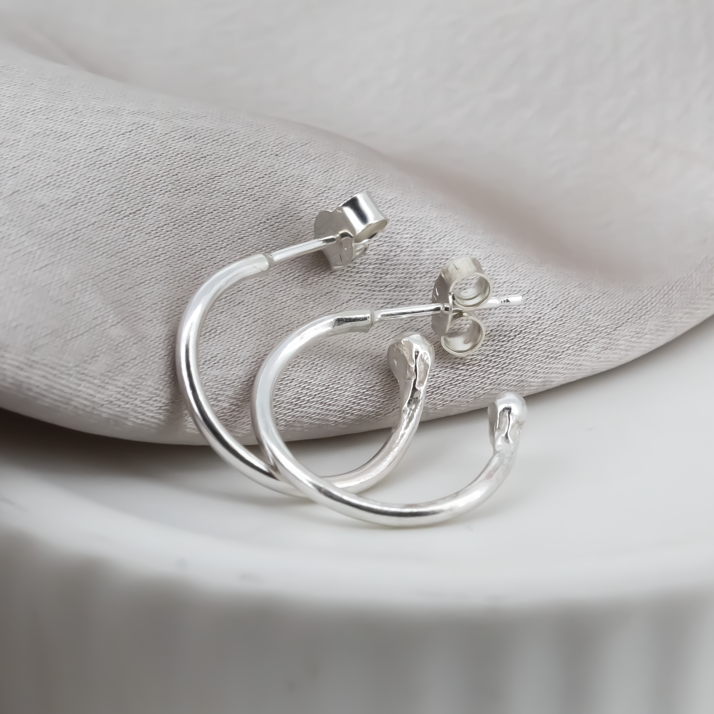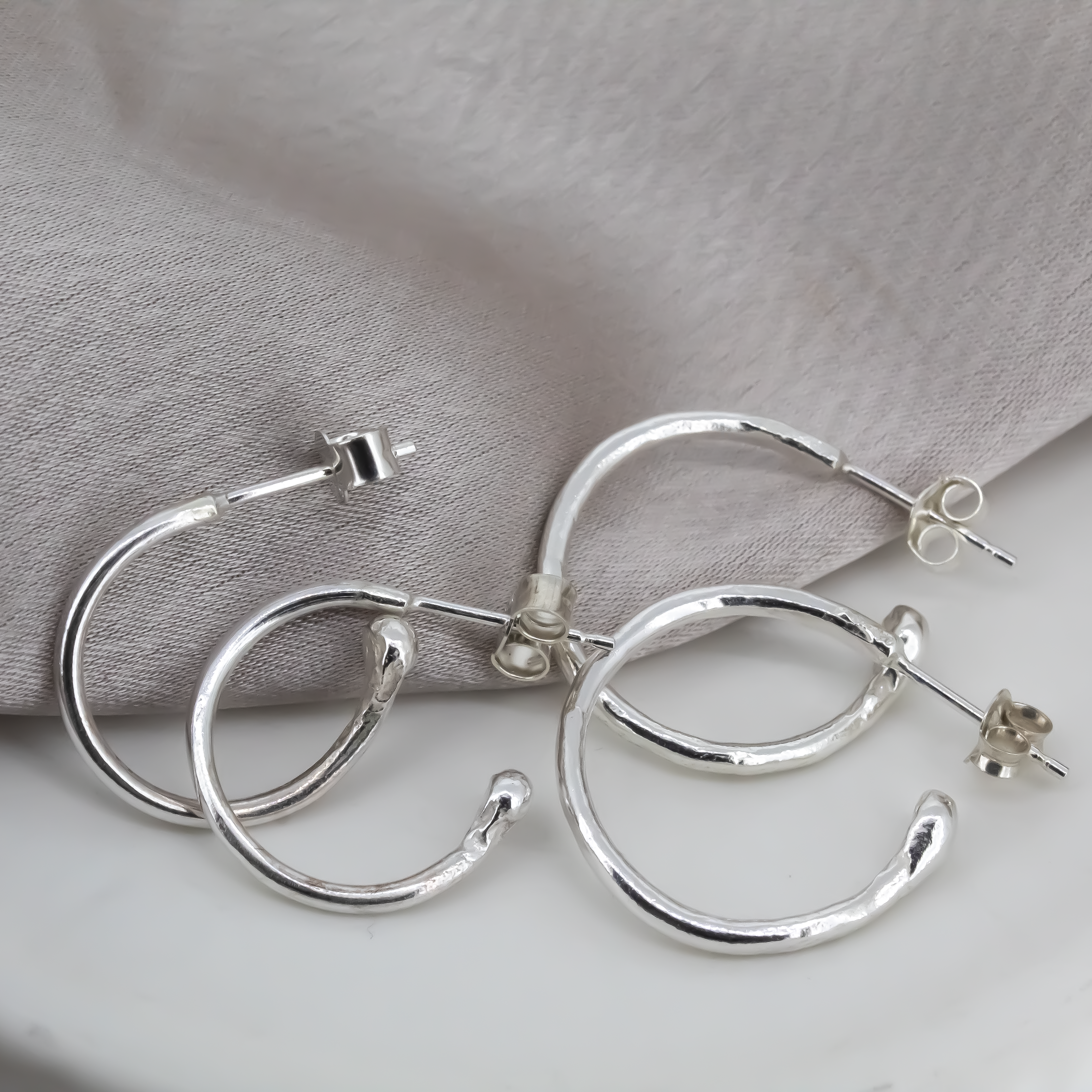 Our mini hoops made in sterling silver. A smaller version of the classic hoops! We've attached a comparison image :)