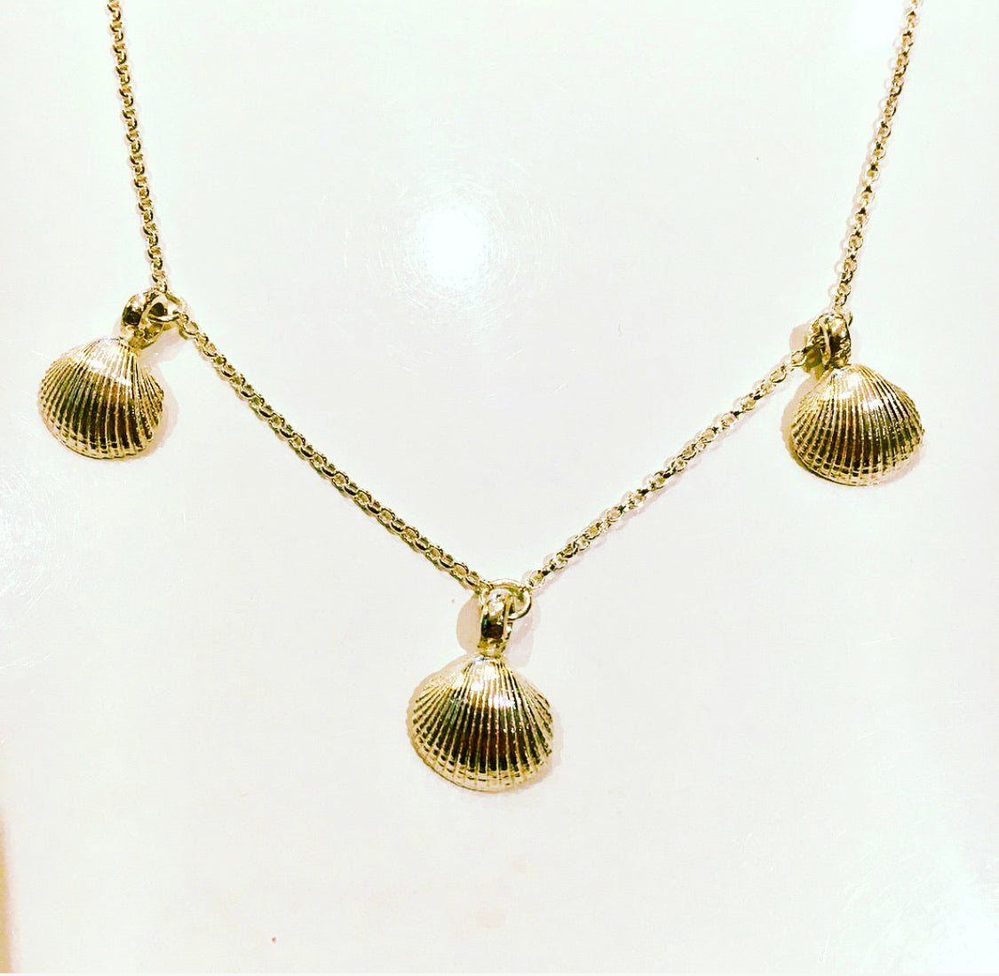 Our 3 Shell necklace has been cast from a genuine shell found on our coastline! Made is solid 9ct Gold