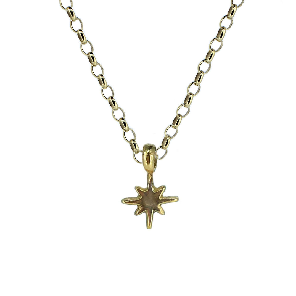 Our beautiful North Star charm in 9ct gold, strung on a 18 inch chain in solid 9ct gold.