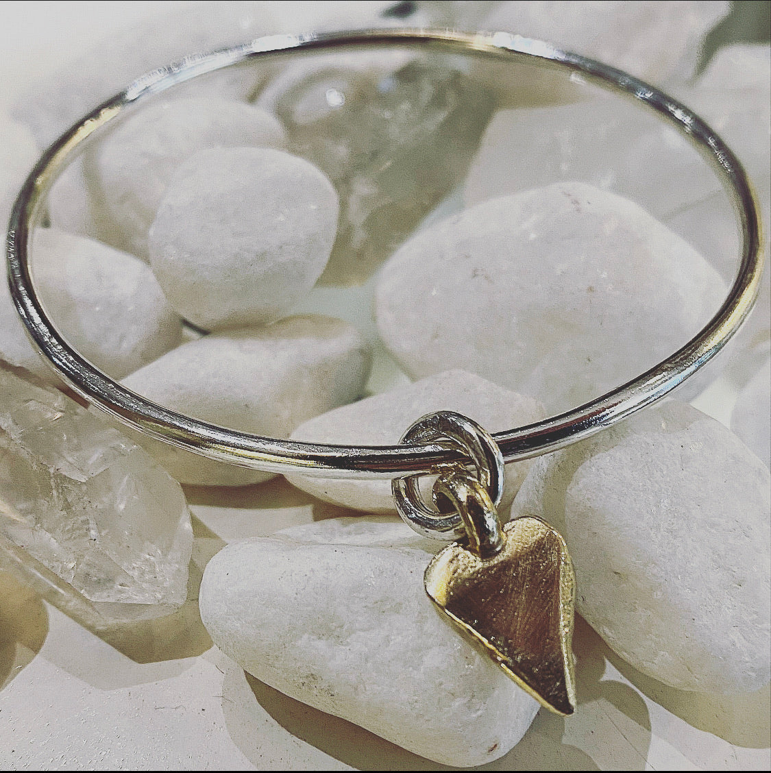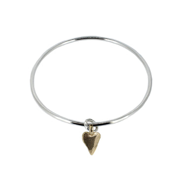 Gold Heart on Silver Bangle