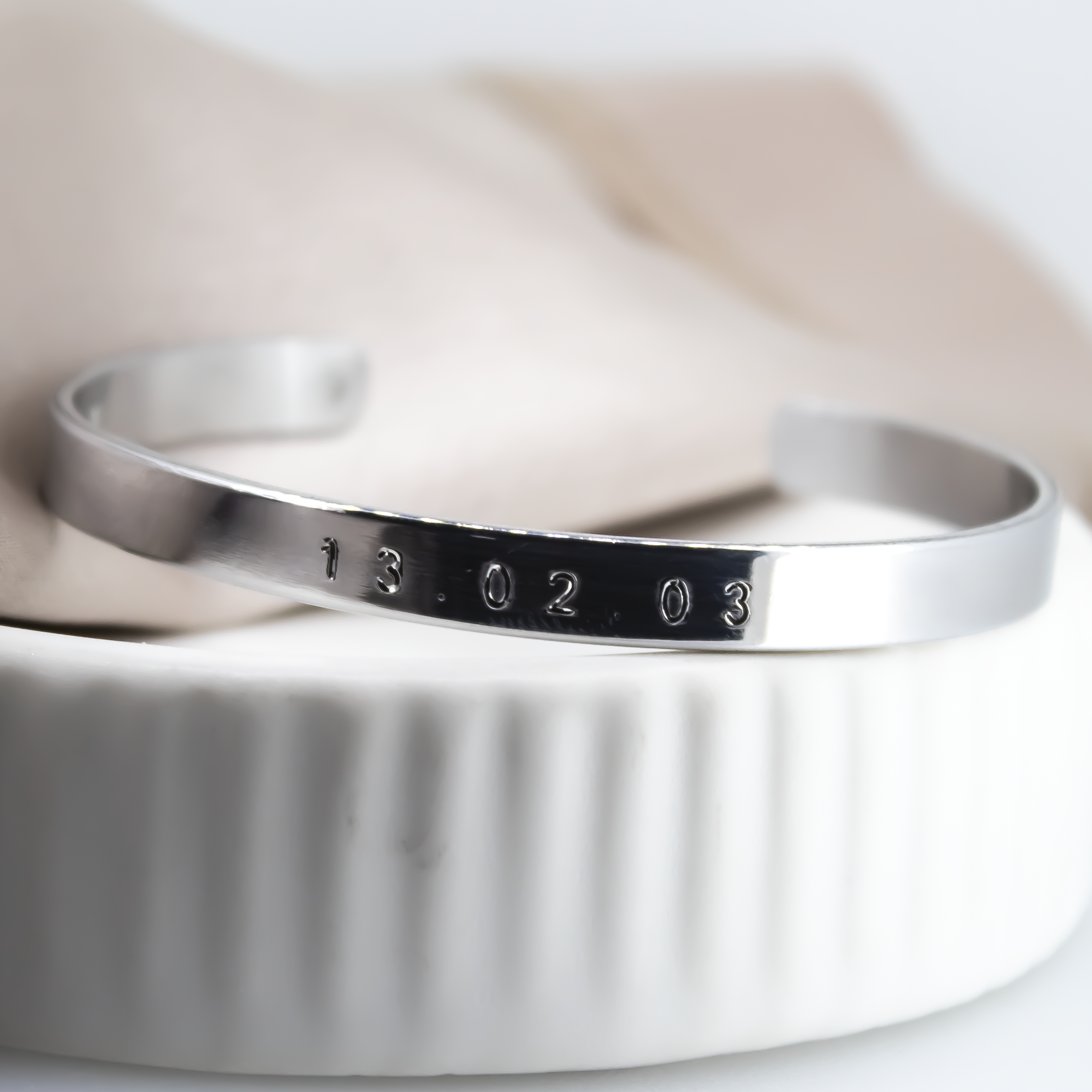 Our Aluminium cuffs will be engraved to create a flawless finish. Hand-stamping is not available on our Aluminium cuffs.