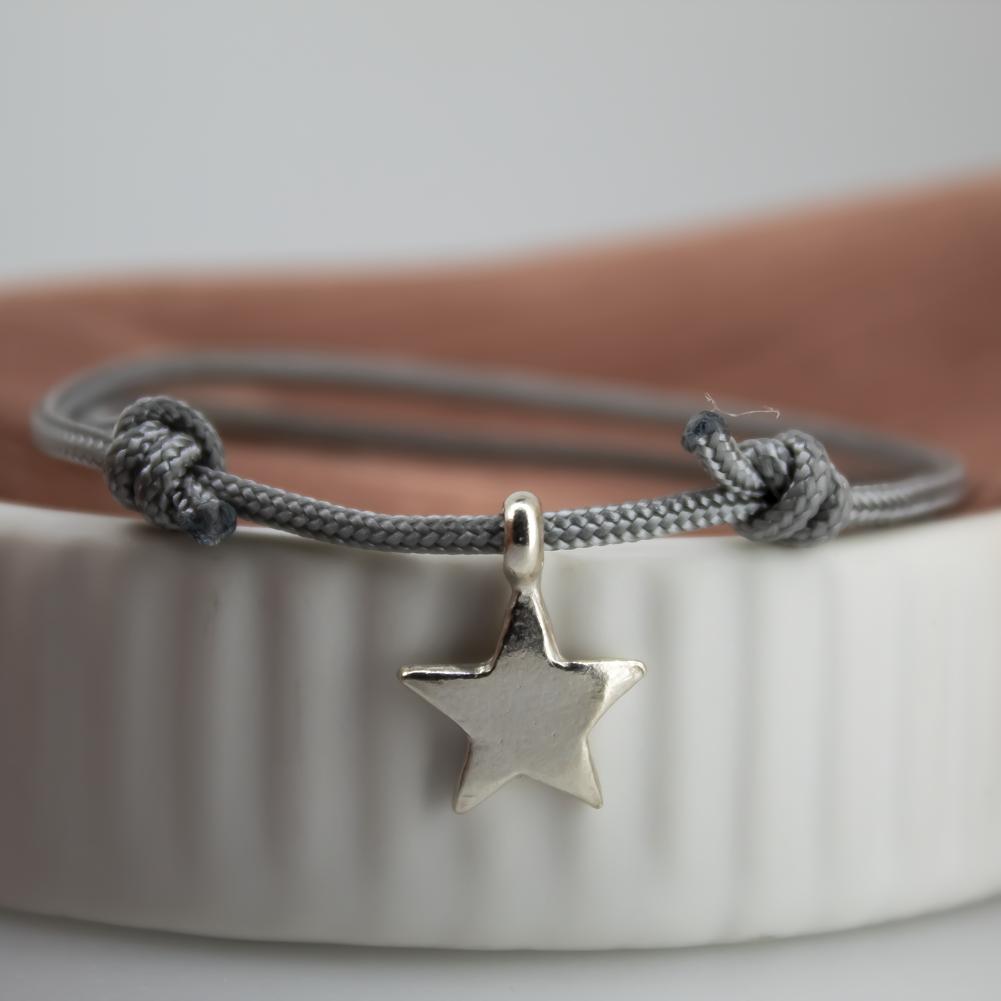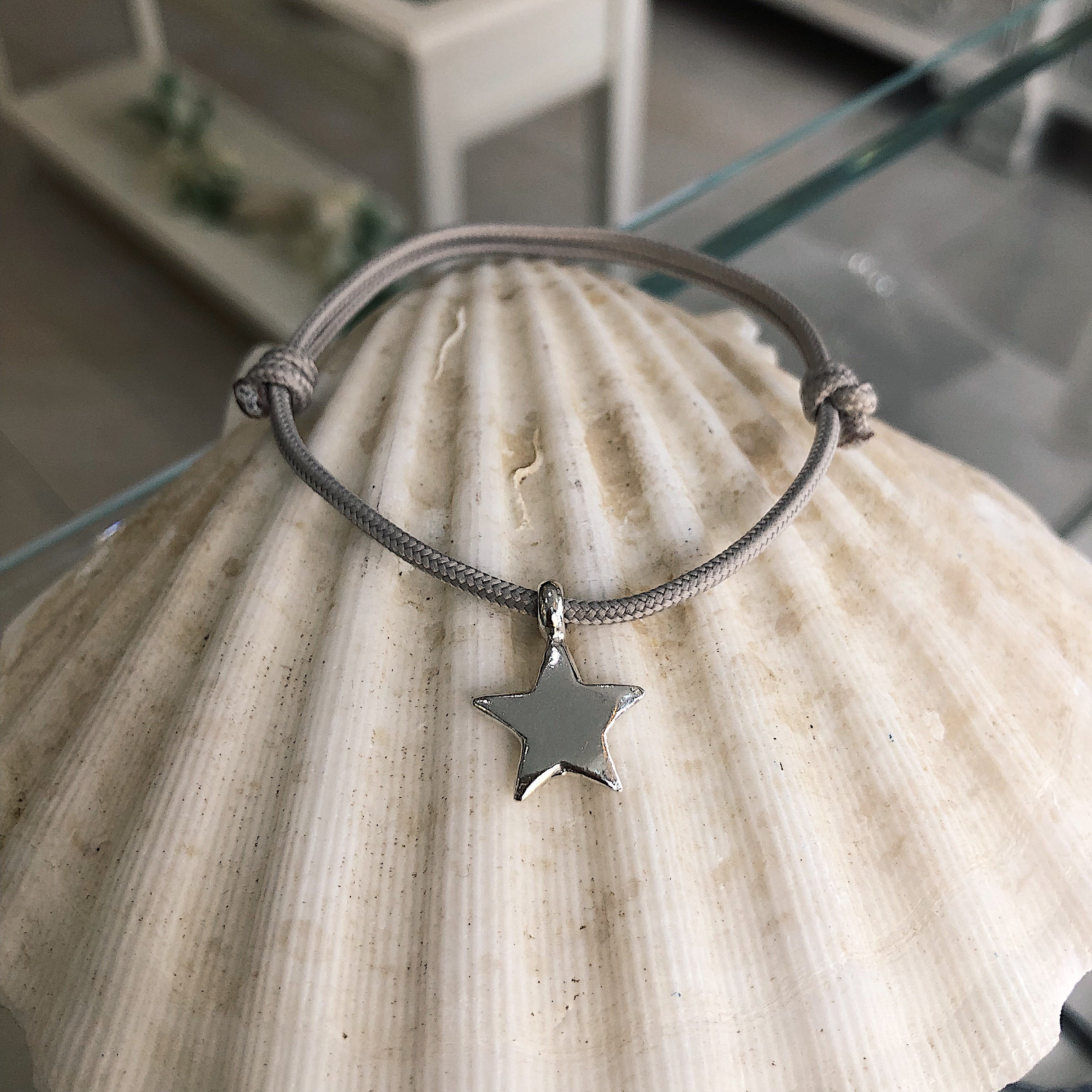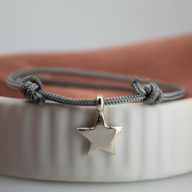 Our handmade sterling silver flat star on a rope of your choice, for the stars in your life. Please add rope colour in the note section. Light Grey will automatically be used if there is no note for an alternative colour.