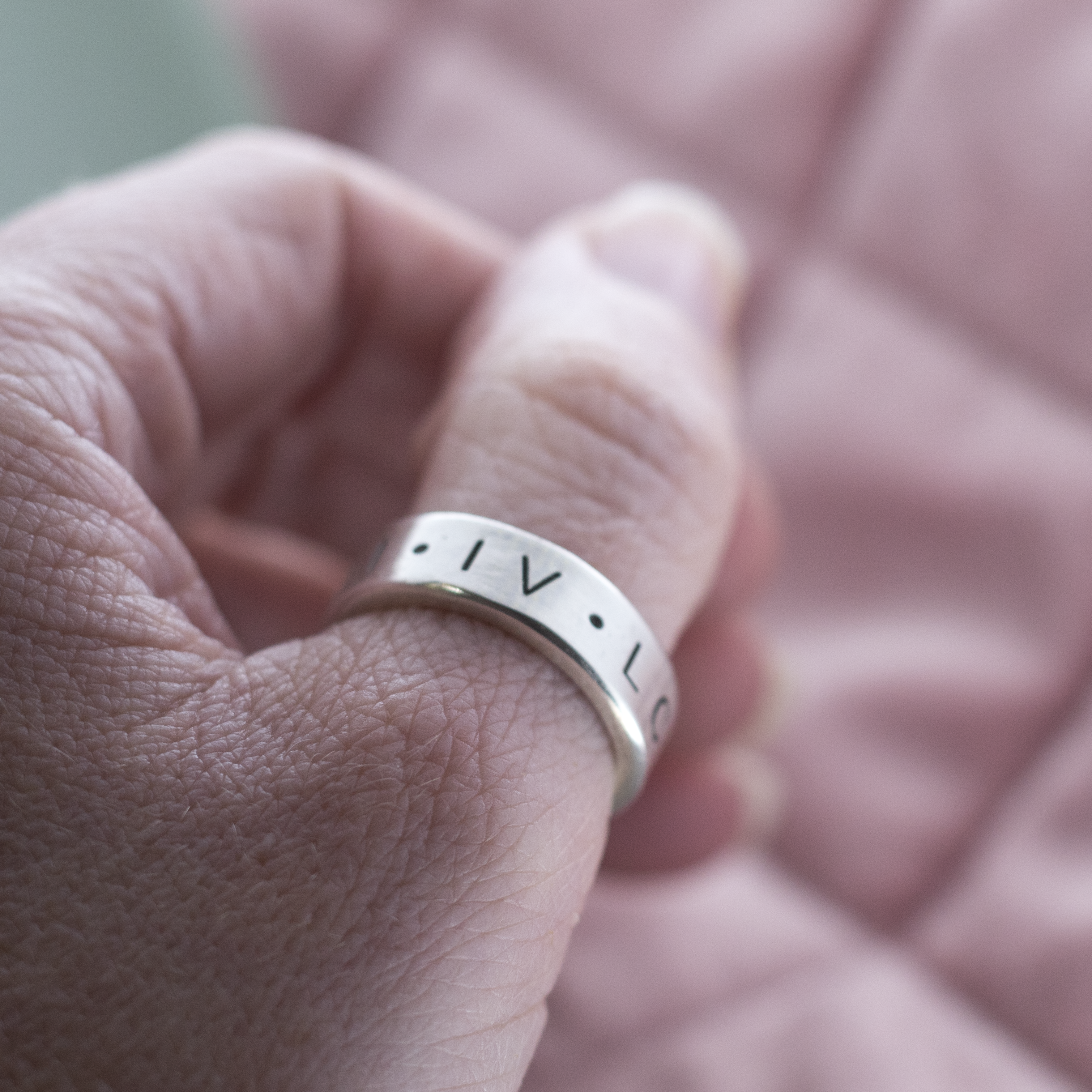 The personalised band rings are a staple piece to your collection with the flat band made for comfort and style. The perfect unisex ring, add a name, initials, roman numerals, a coordinate or a special word of your choice to create a personal gift for a loved one. A unique, yet wearable everyday piece to add to your collection. Why not get matching rings for your best friend or a significant other?
