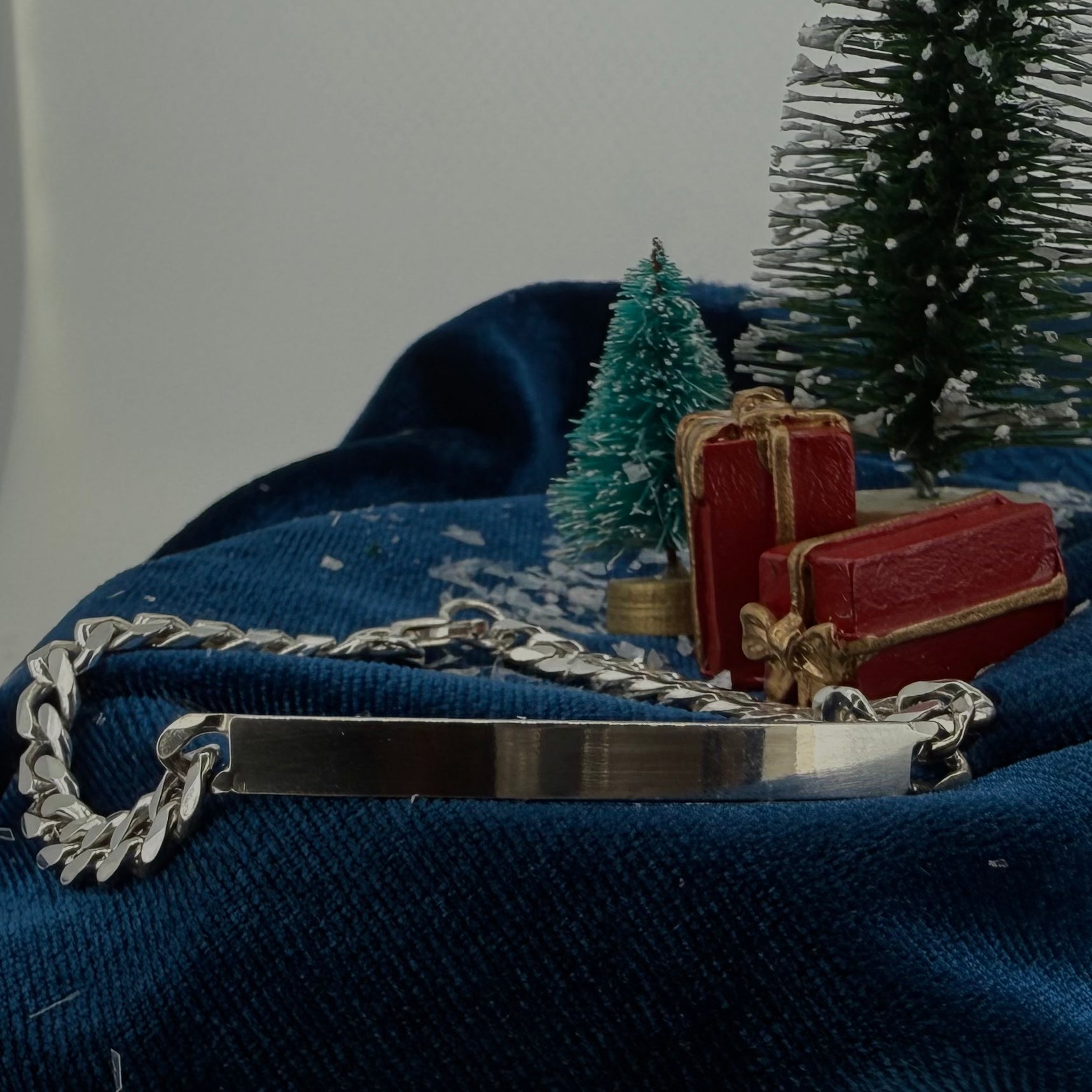 Enhance any outfit with our Unisex Identity Bracelet. Made of sterling silver, it can be customized with up to 18 characters in standard or italic font, or even with a loved one's handwriting. With adjustable sizes, it makes for a perfect and unique gift.