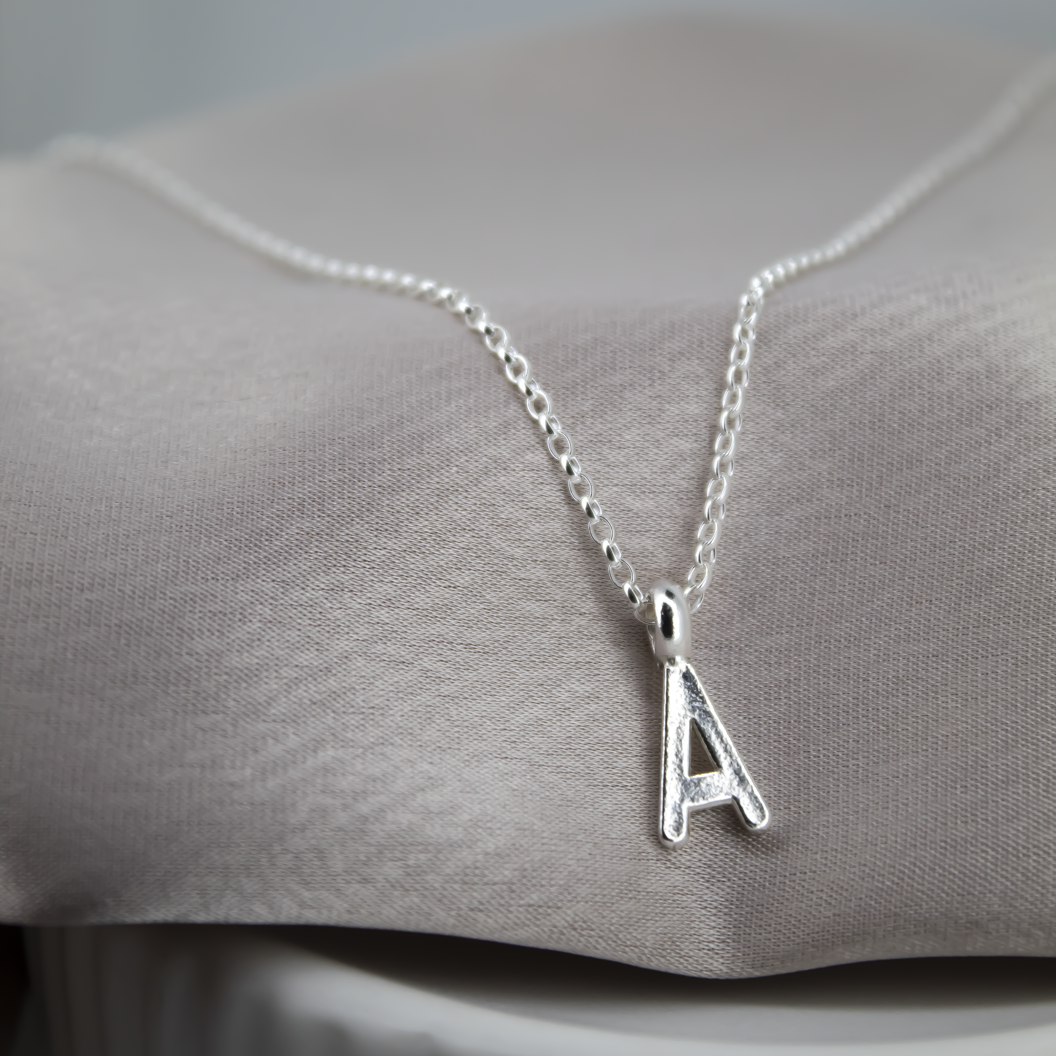 Your choice of initial handmade in sterling silver which comes on varied standard chain lengths.