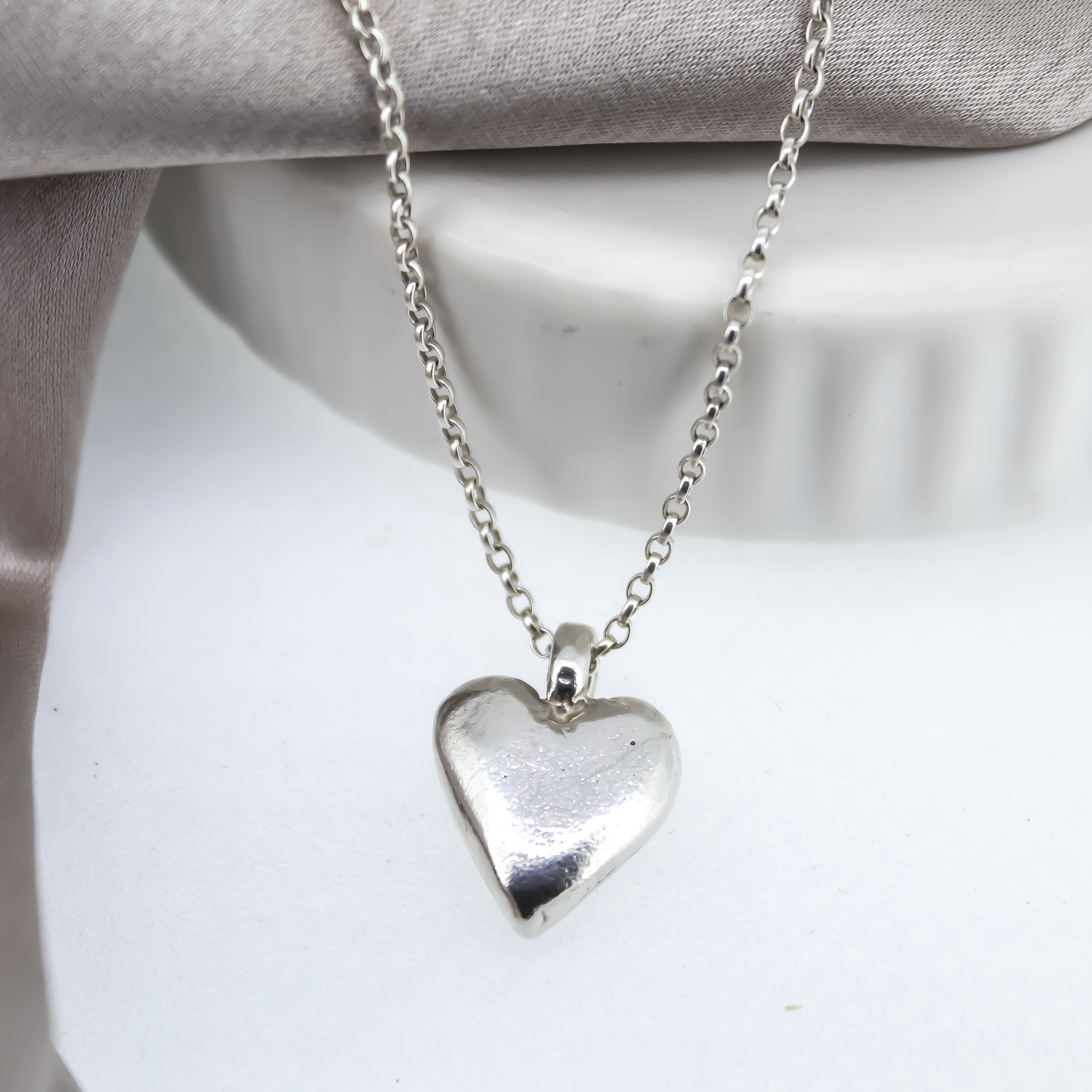 Beautiful sterling silver handmade large heart necklace on a Belcher 3 chain.