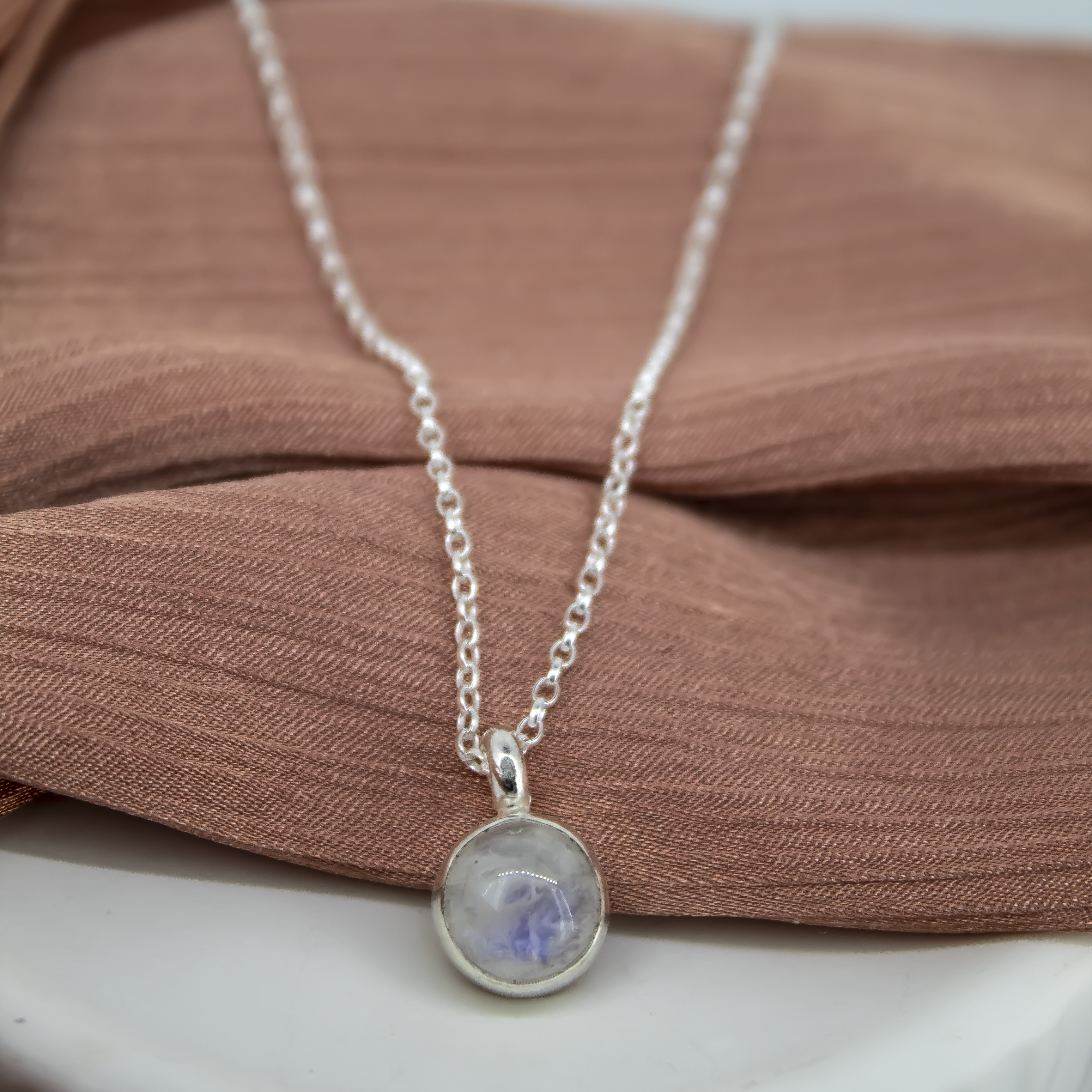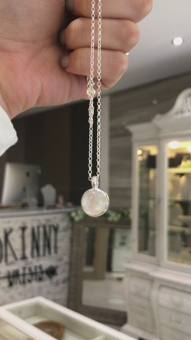 Gorgeous 10mm Moonstone gemstone strung on our 18" sterling silver chain.