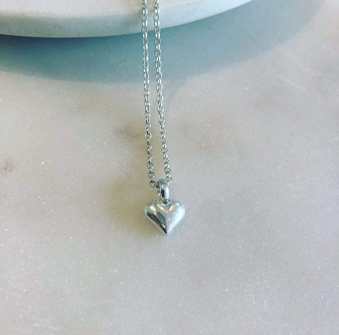 All lovingly made by hand using recycled solid 925 Sterling Silver. A beautiful piece to be worn alone or layered with other staple pieces. Beautiful sterling silver handmade baby heart necklace on our standard 18inch chain. We do have other chain lengths available, just let us know!