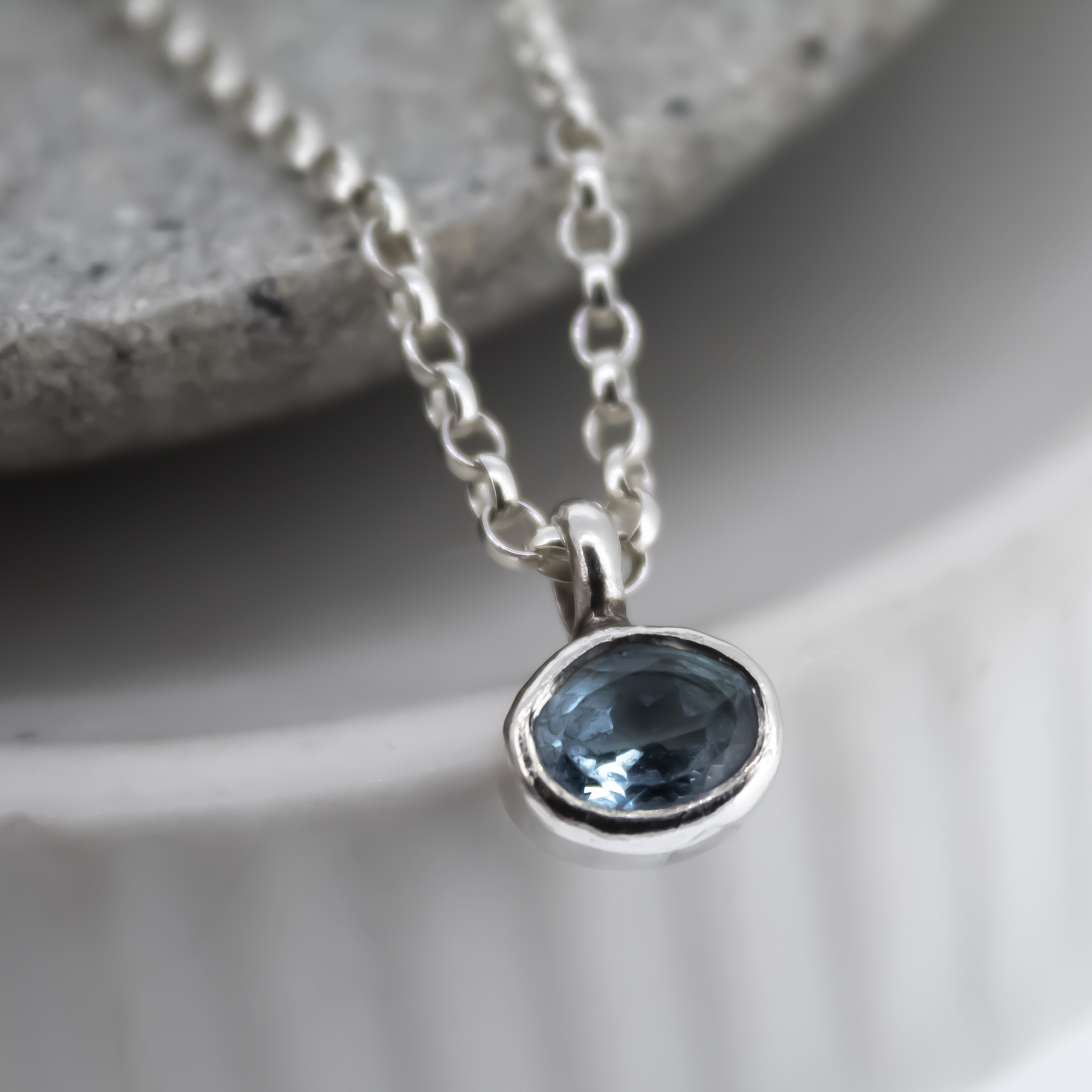 A beautiful 10x8mm topaz stone set in sterling silver, all made by hand on an 18 Inch chain.