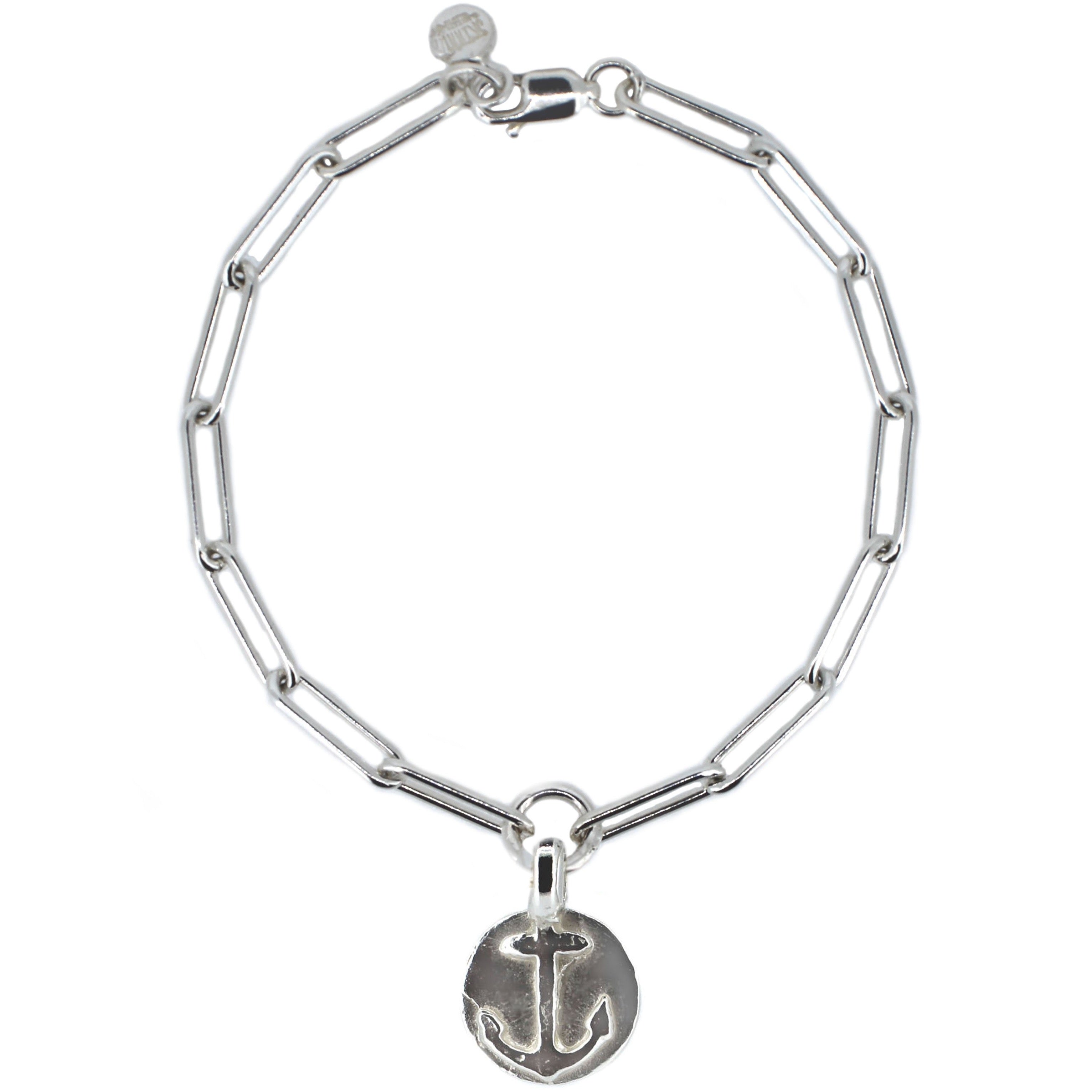 All lovingly made by hand using recycled solid 925 Sterling Silver. A beautiful piece to be worn alone or layered with other staple pieces. Handmade sterling silver trace chain bracelet with nautical anchor disc charm.
