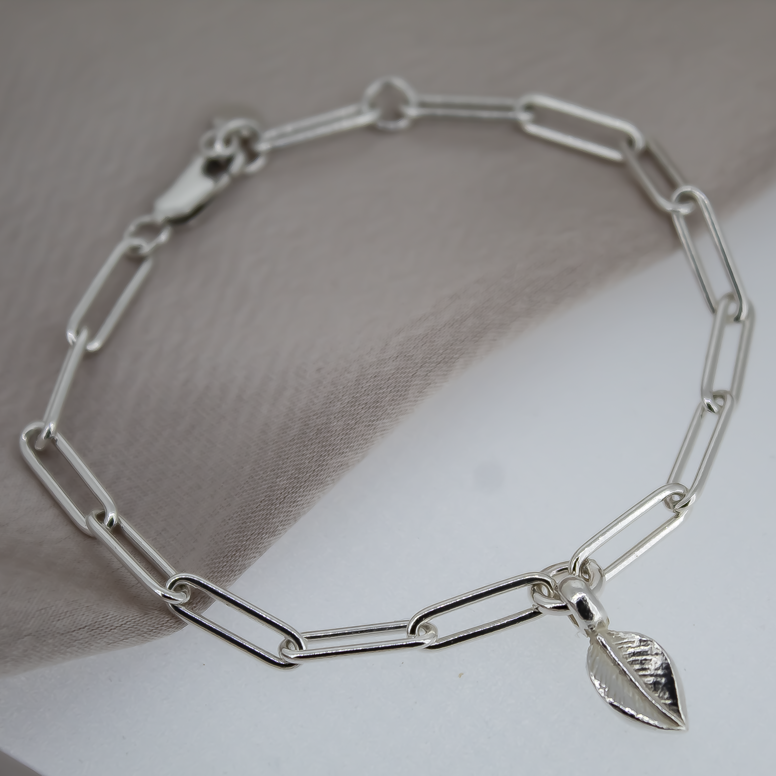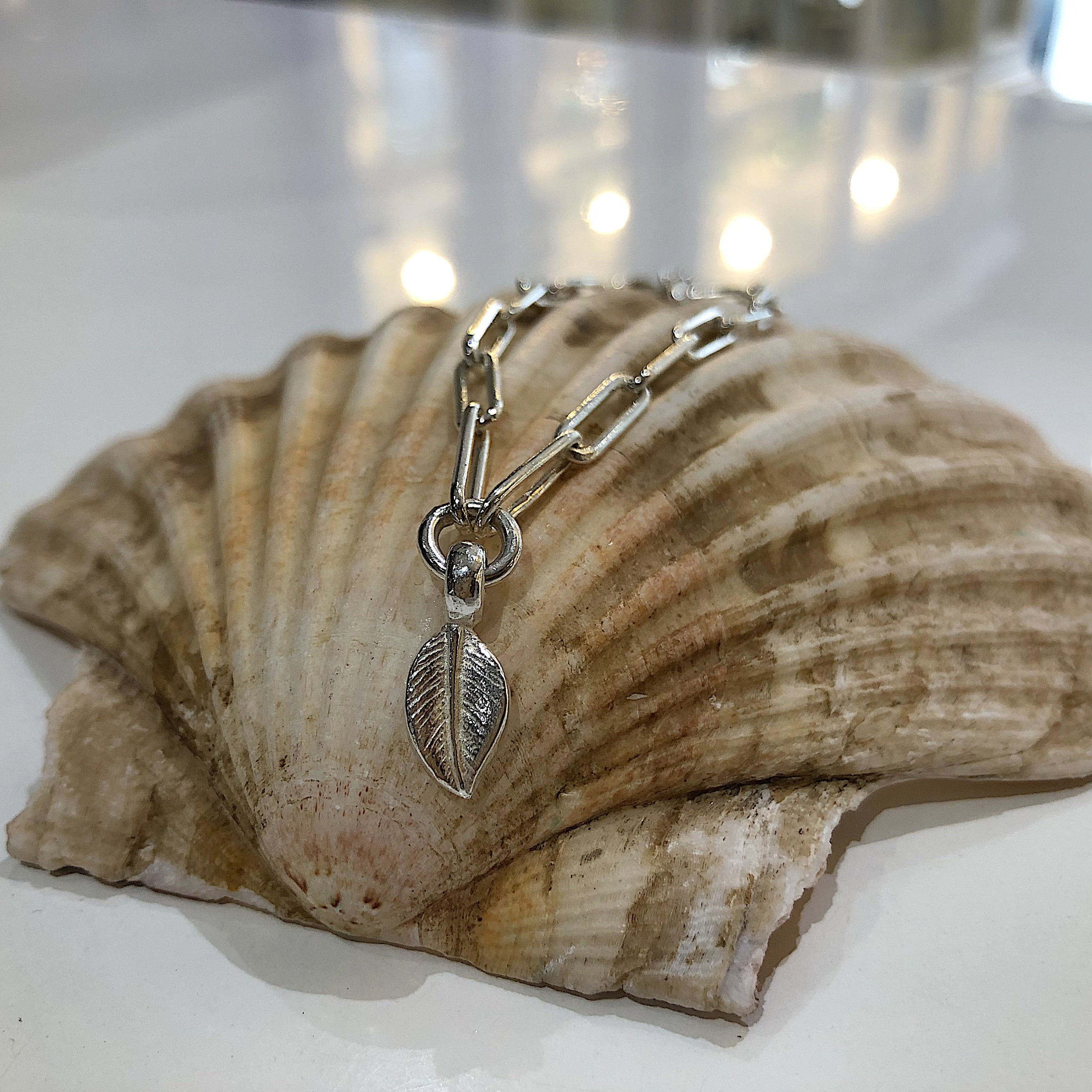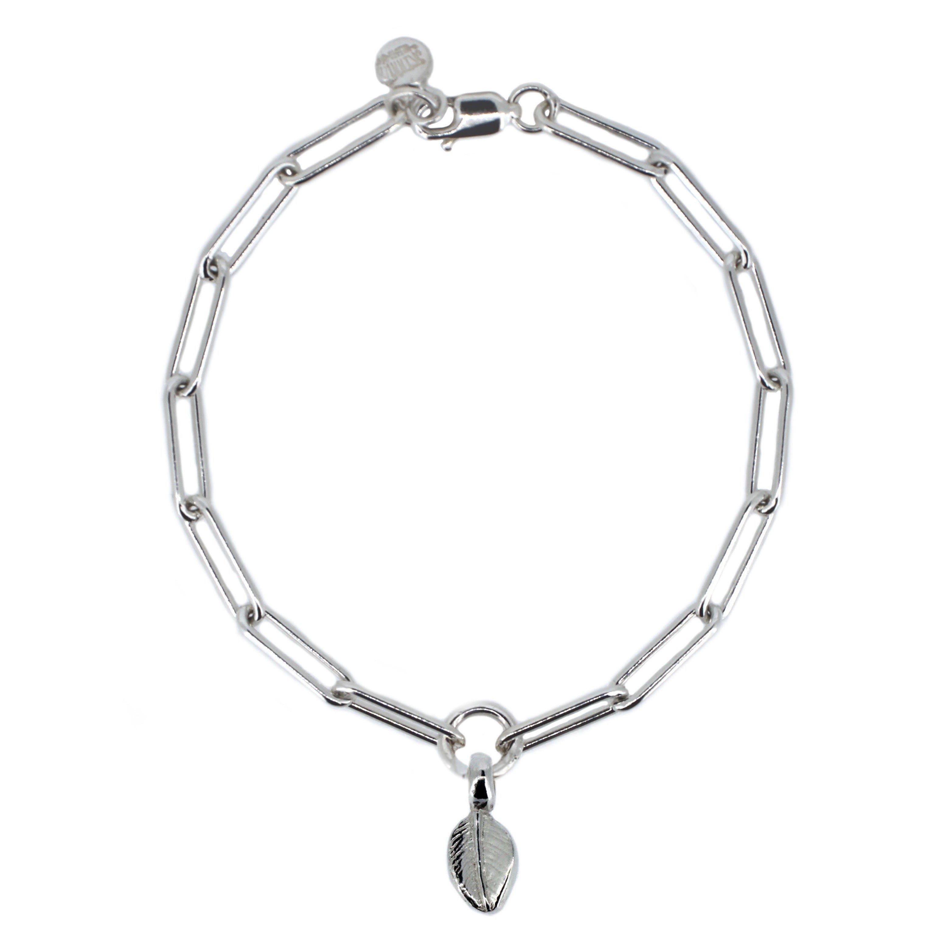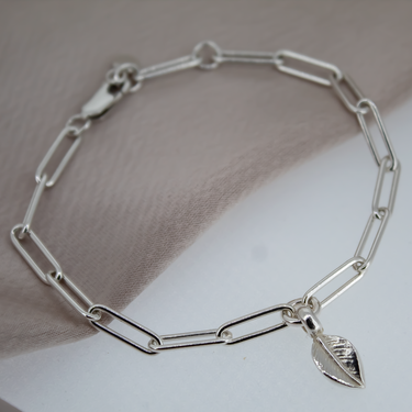 Handmade sterling silver trace chain bracelet with Leaf charm