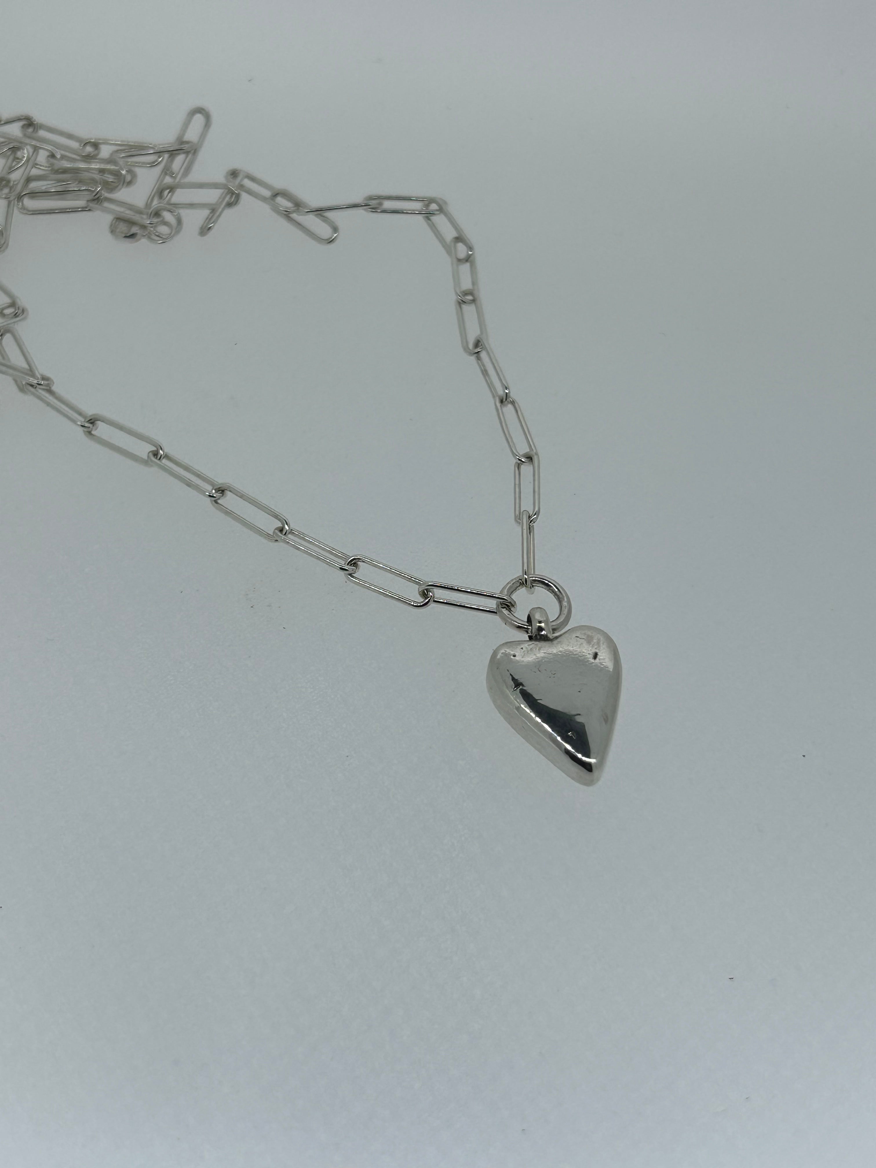 The Maxi heart made in solid sterling silver on our 18 inch sterling silver trace chain..