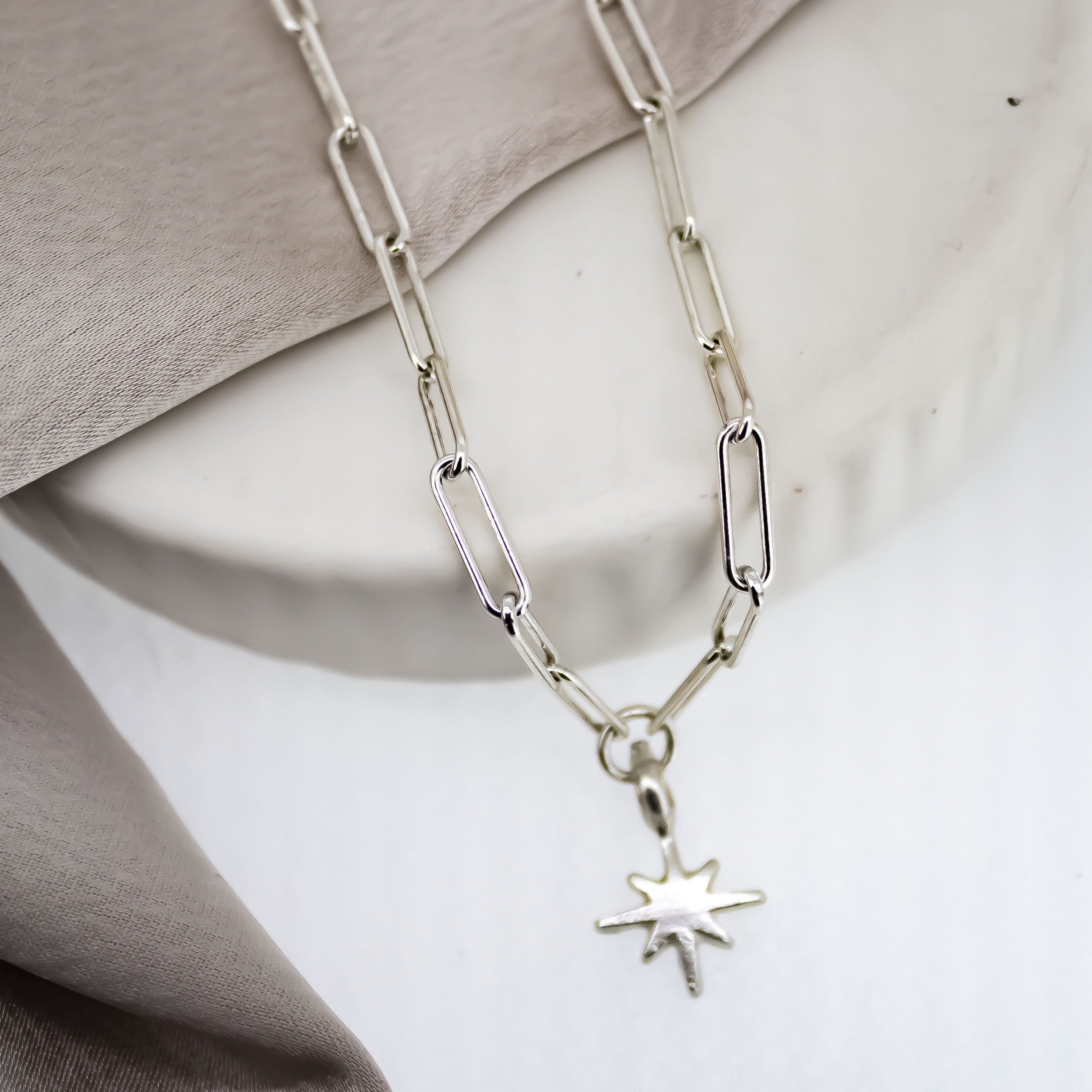 Our Trace Chain in 18 inch sterling silver with our beautiful North Star Charm.Skinny Wrists