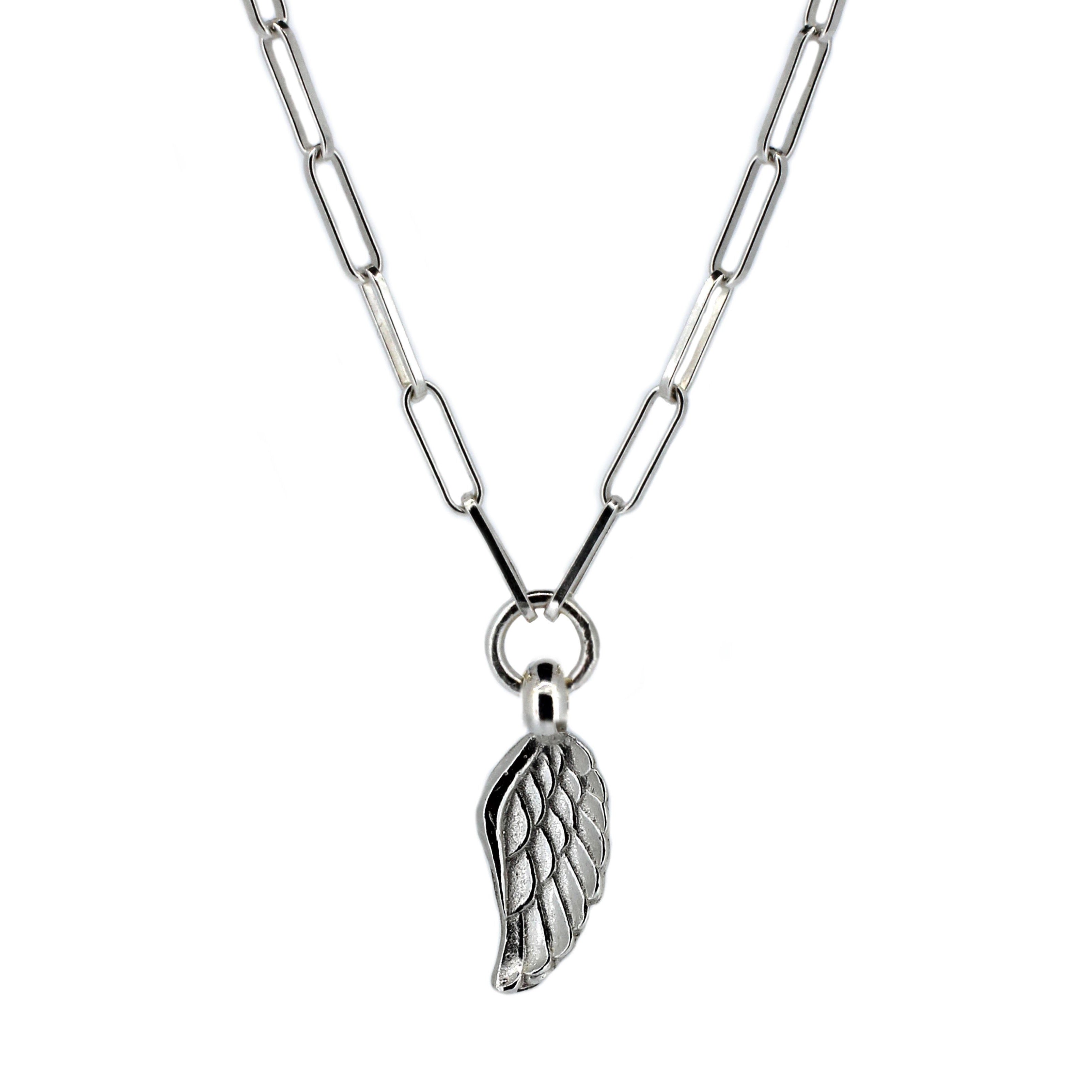 Our Trace Chain in 18 inch sterling silver with our beautiful angel wing charm.