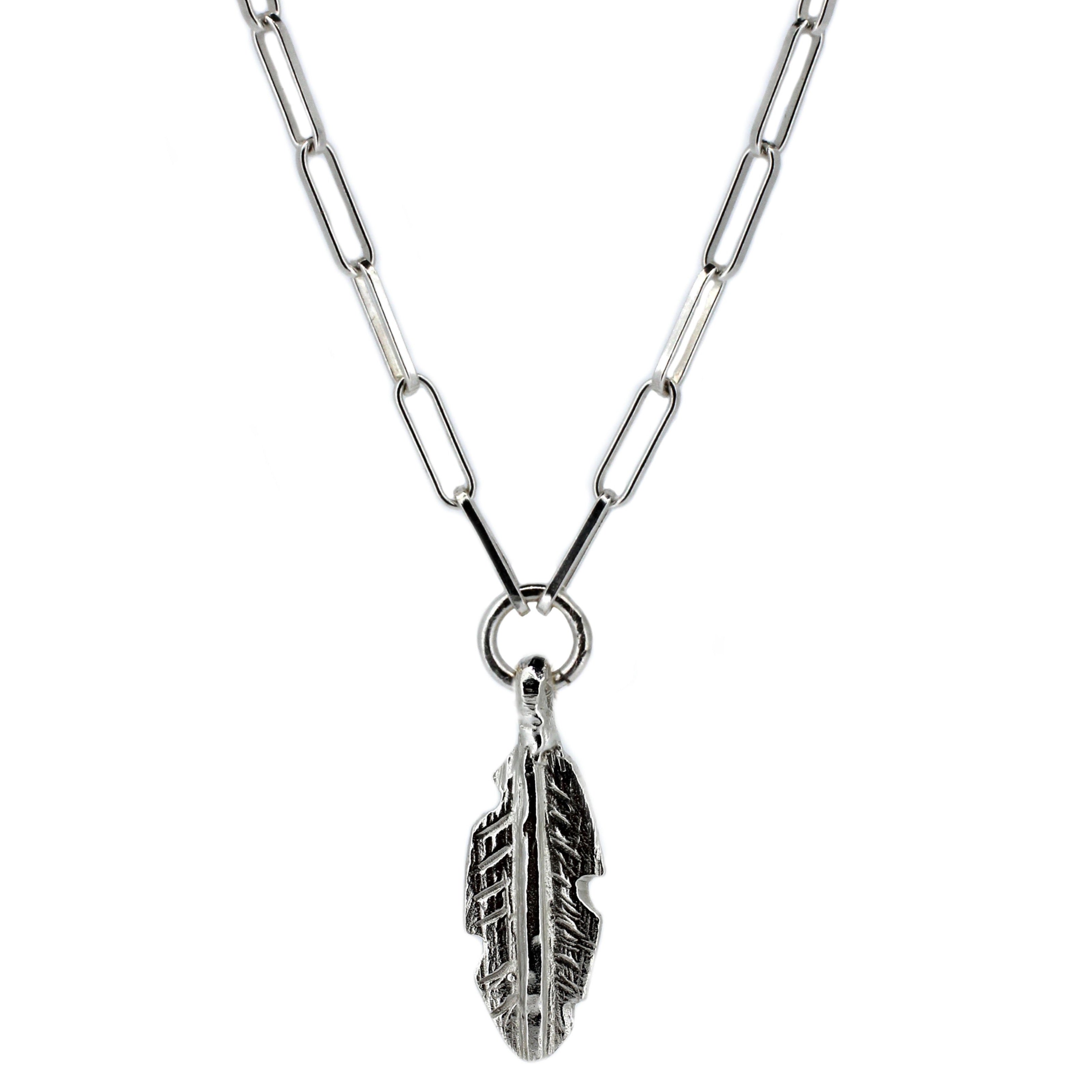 Our Trace Chain in 18 inch sterling silver with our beautiful solid feather.
