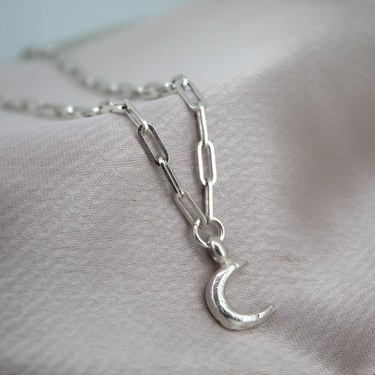 Our Trace Chain in 18 inch sterling silver with our beautiful solid moon.
