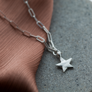 Our Trace Chain in 18 inch sterling silver with our beautiful flat star charm.