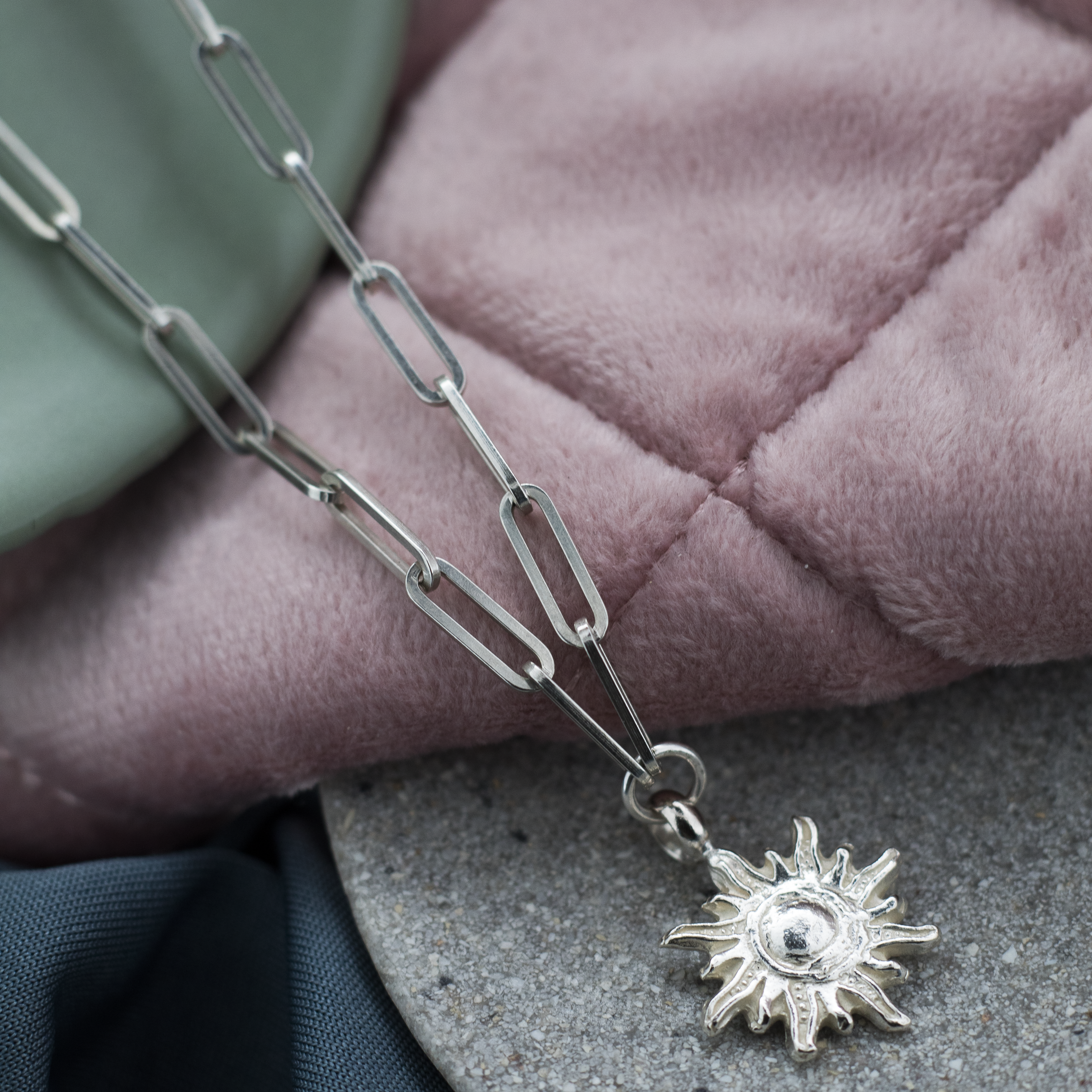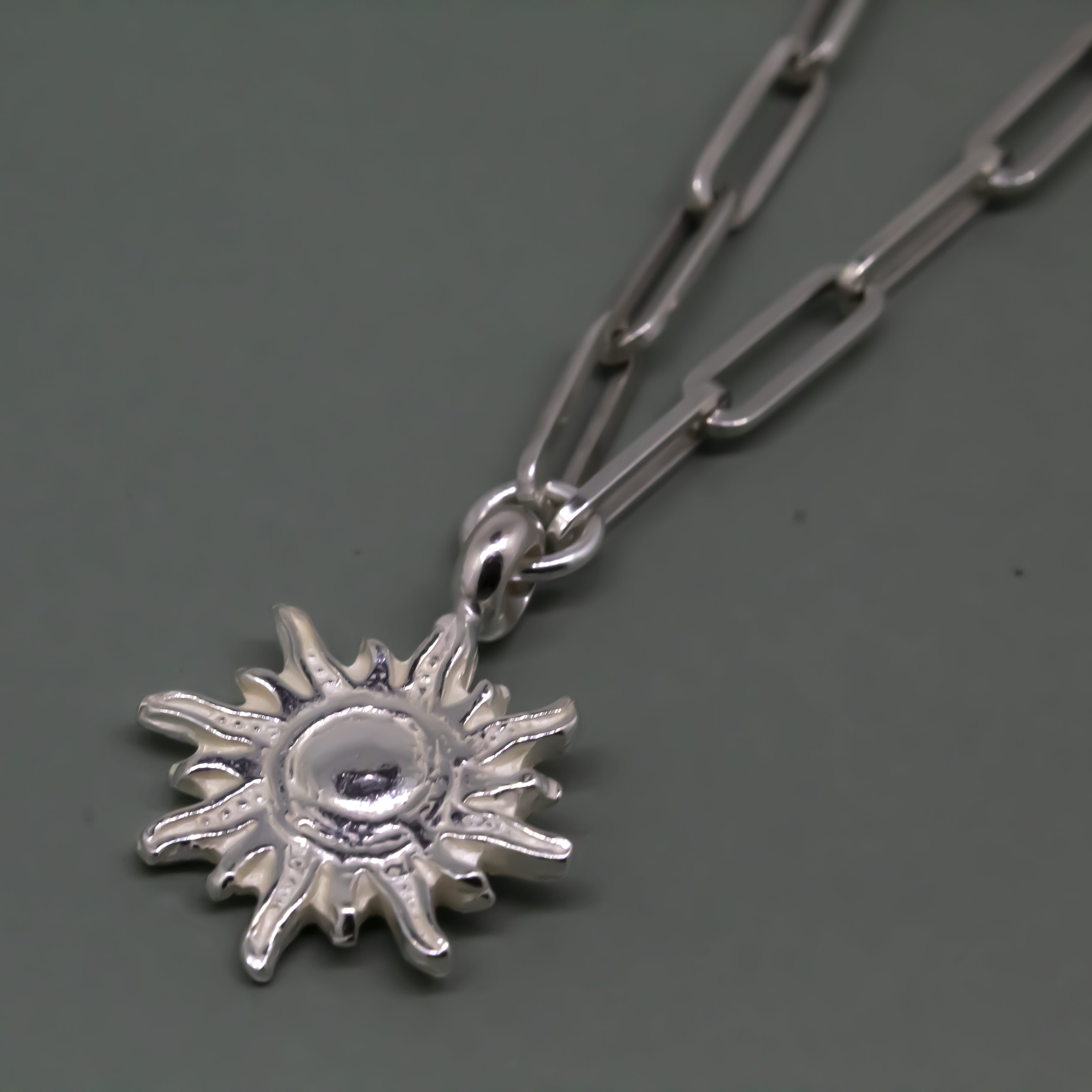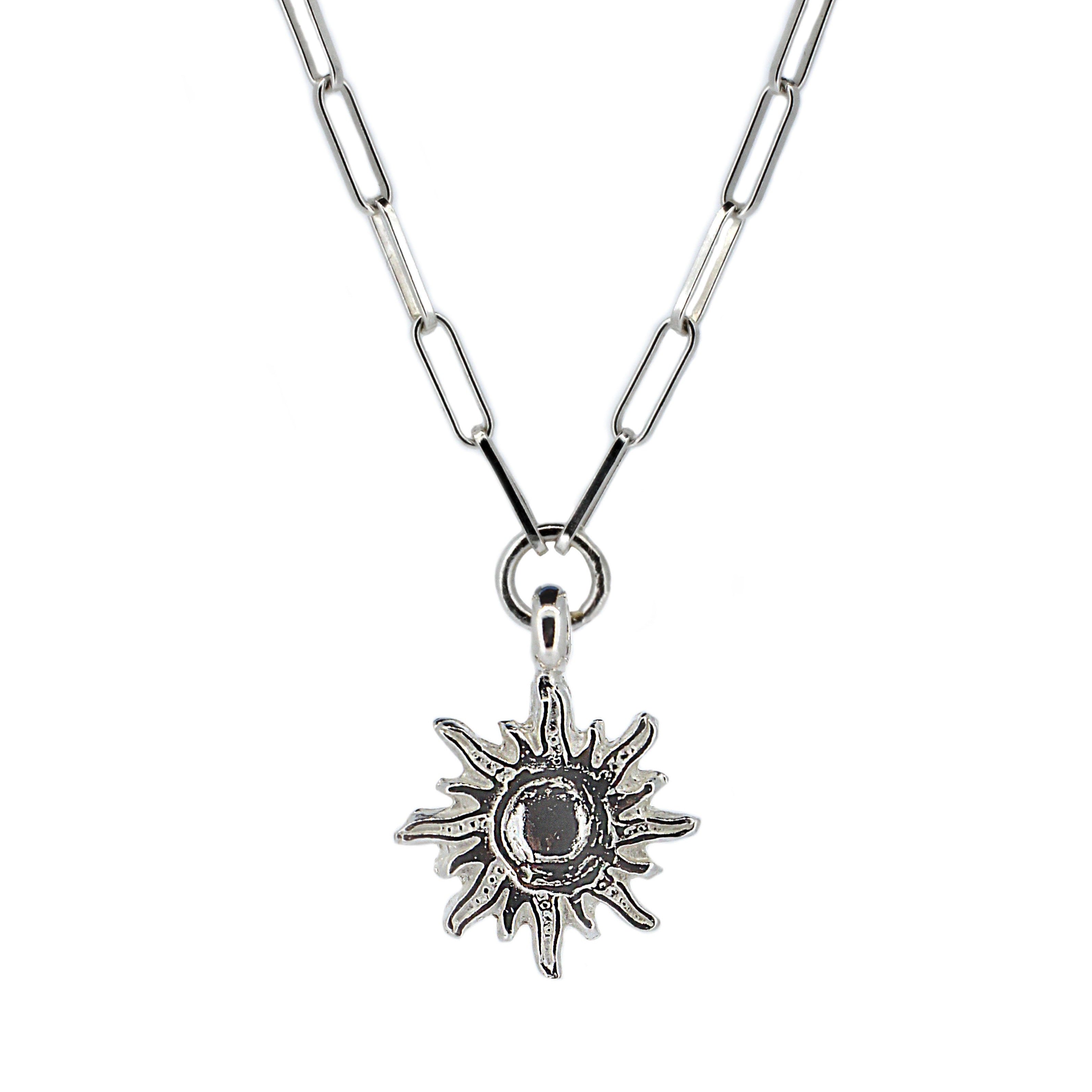 Our Sterling Silver Sun of Hope Charm necklace is just lovely and comes on a 16 - 18 inch chain and if you're sending this as a gift we can send a personal note to go with it too! All lovingly made by hand using recycled solid 925 Sterling Silver. A beautiful piece to be worn alone or layered with other staple pieces.