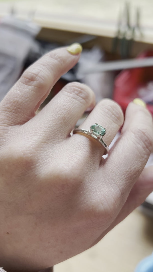 Handmade in sterling silver this oval shape Emerald has a majestic feel to it.