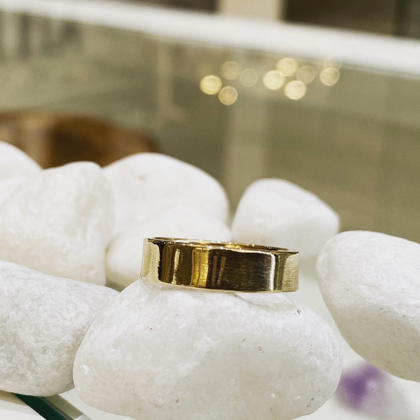 All lovingly made by hand using recycled solid 9ct Gold. A beautiful piece to be worn alone or layered with other staple pieces. Beautiful handmade gold flat wedding band. Engraving is available and measuring 5mm x 1.7mm.