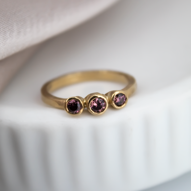 Handmade in 9ct gold  with 3 sparkling Morganite stones.