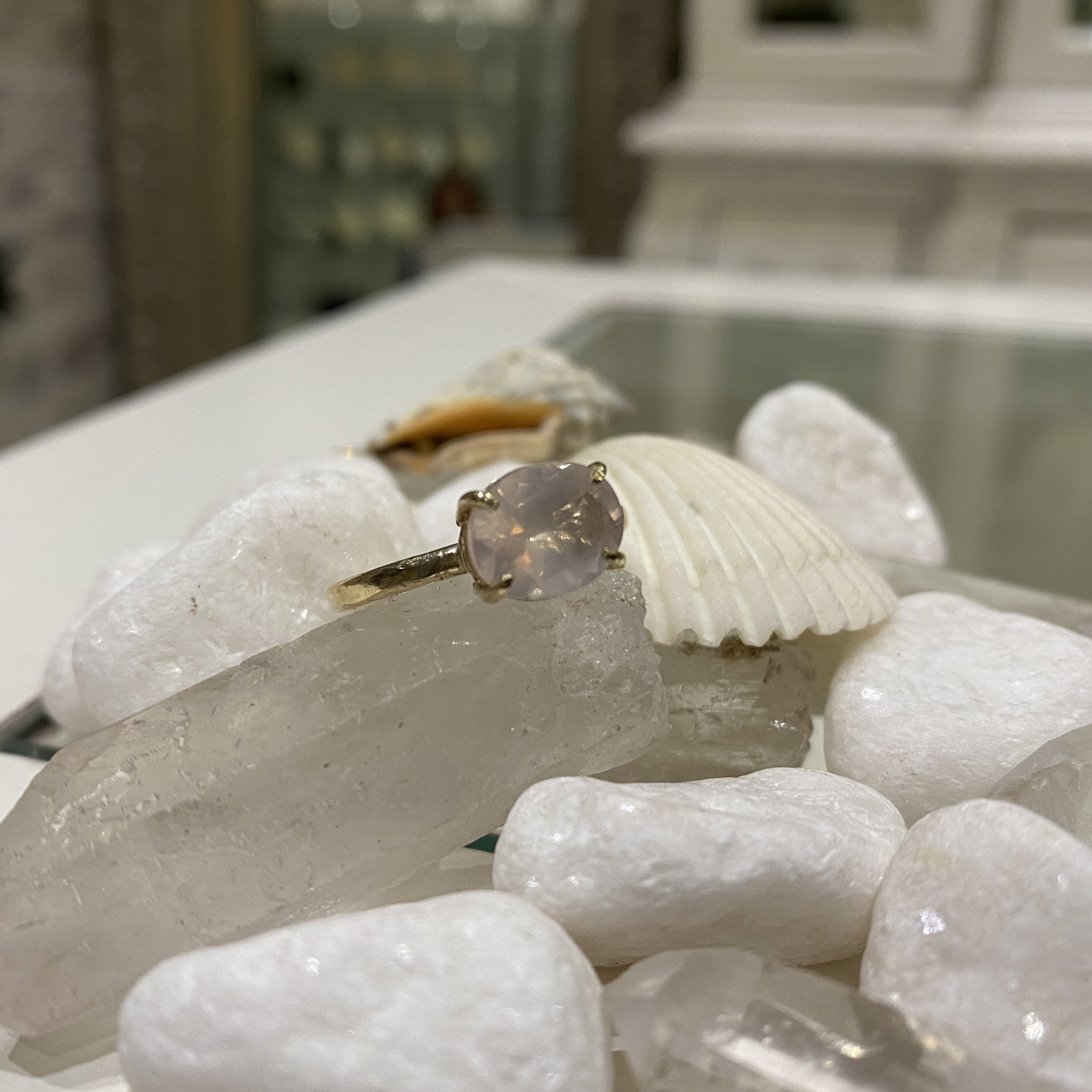 Rose Quartz and Gold Treasured Ring