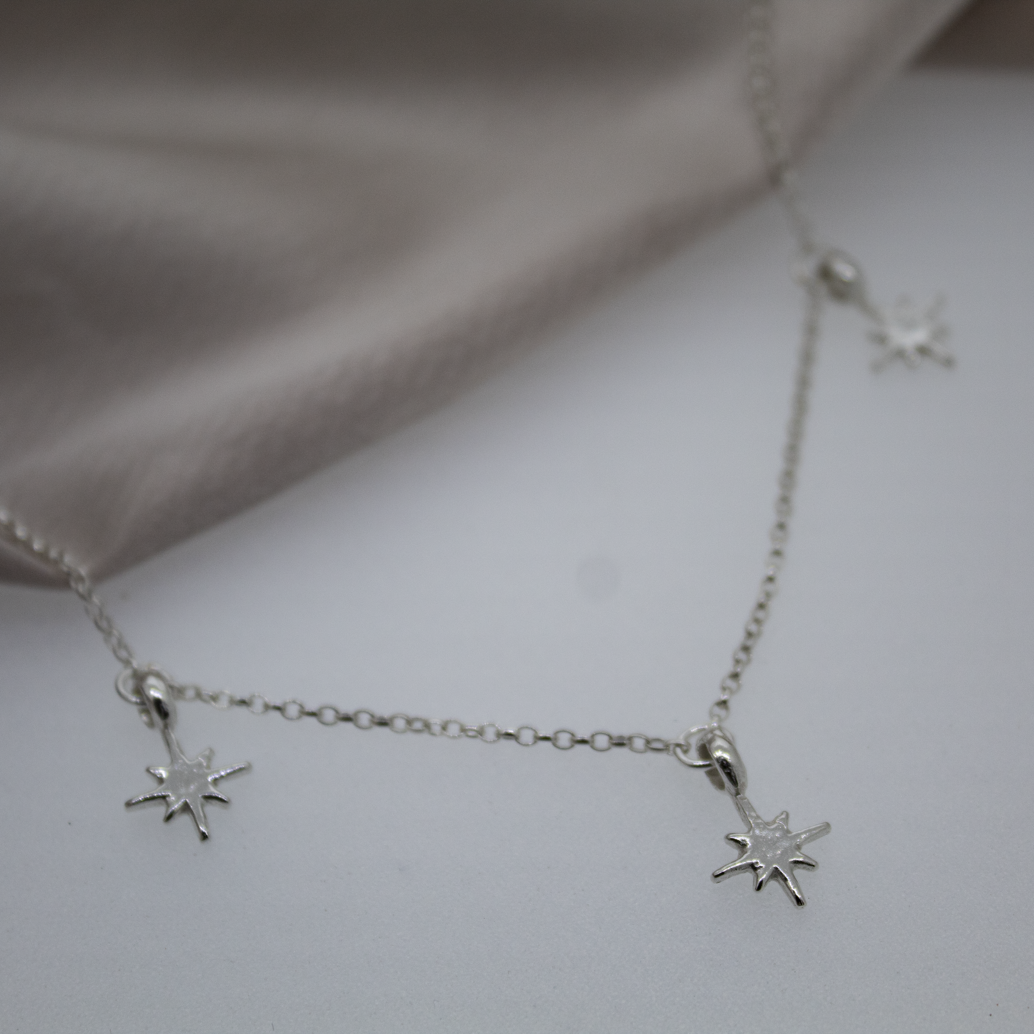 Beautiful handmade sterling silver necklace with 3 north stars to adorn your neck measuring 18inches.