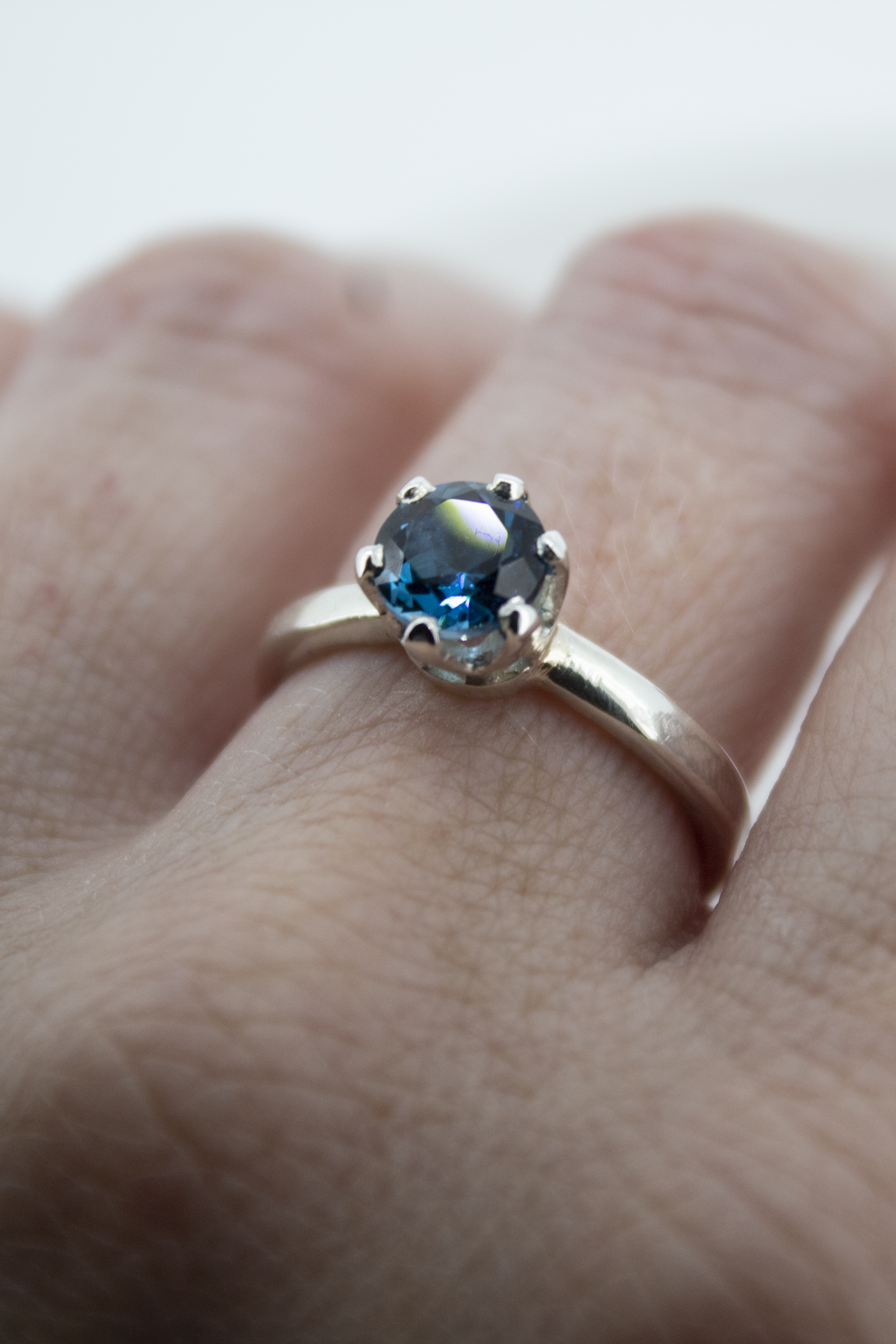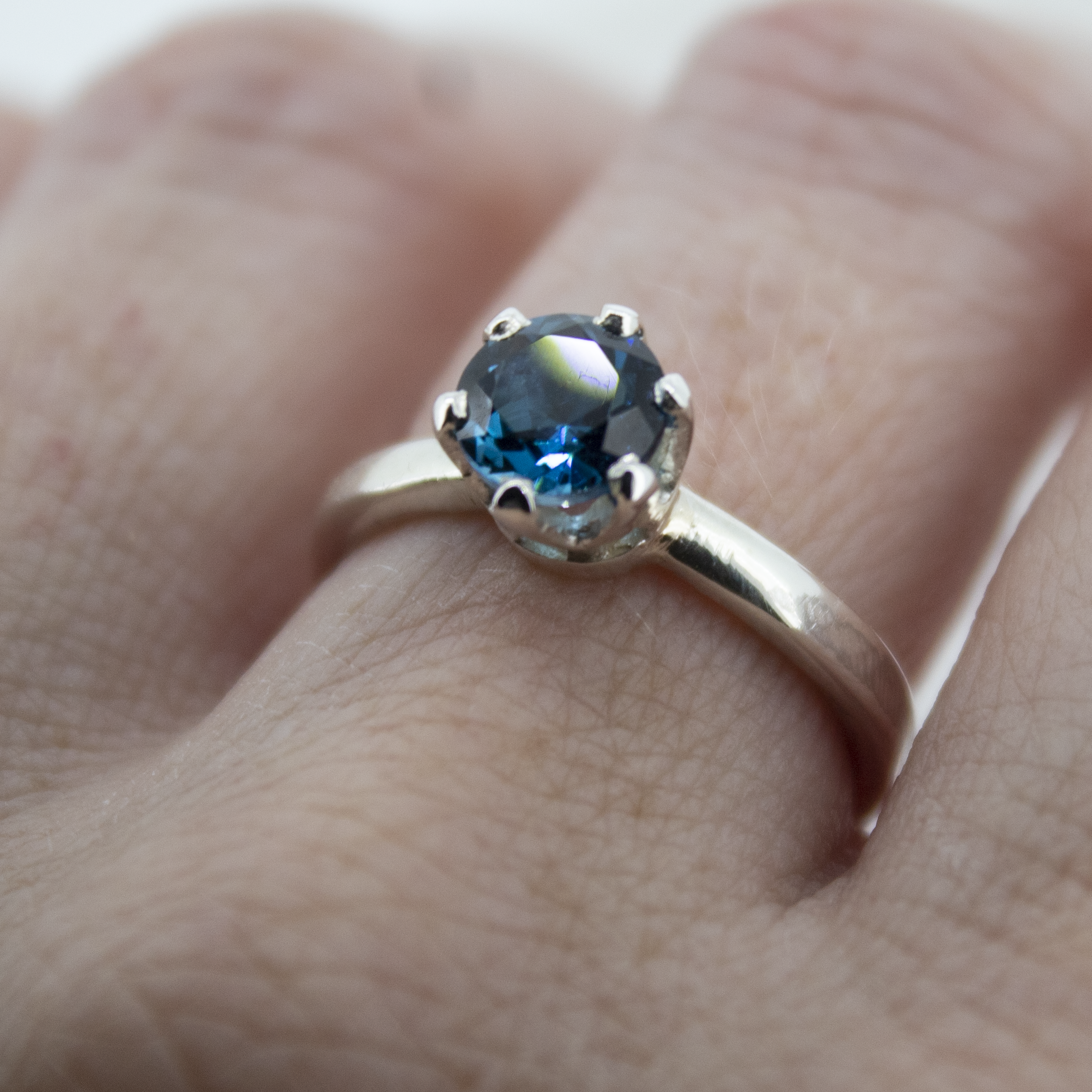 Beautiful round 6mm London blue Topaz stone treasure ring handmade in sterling silver.